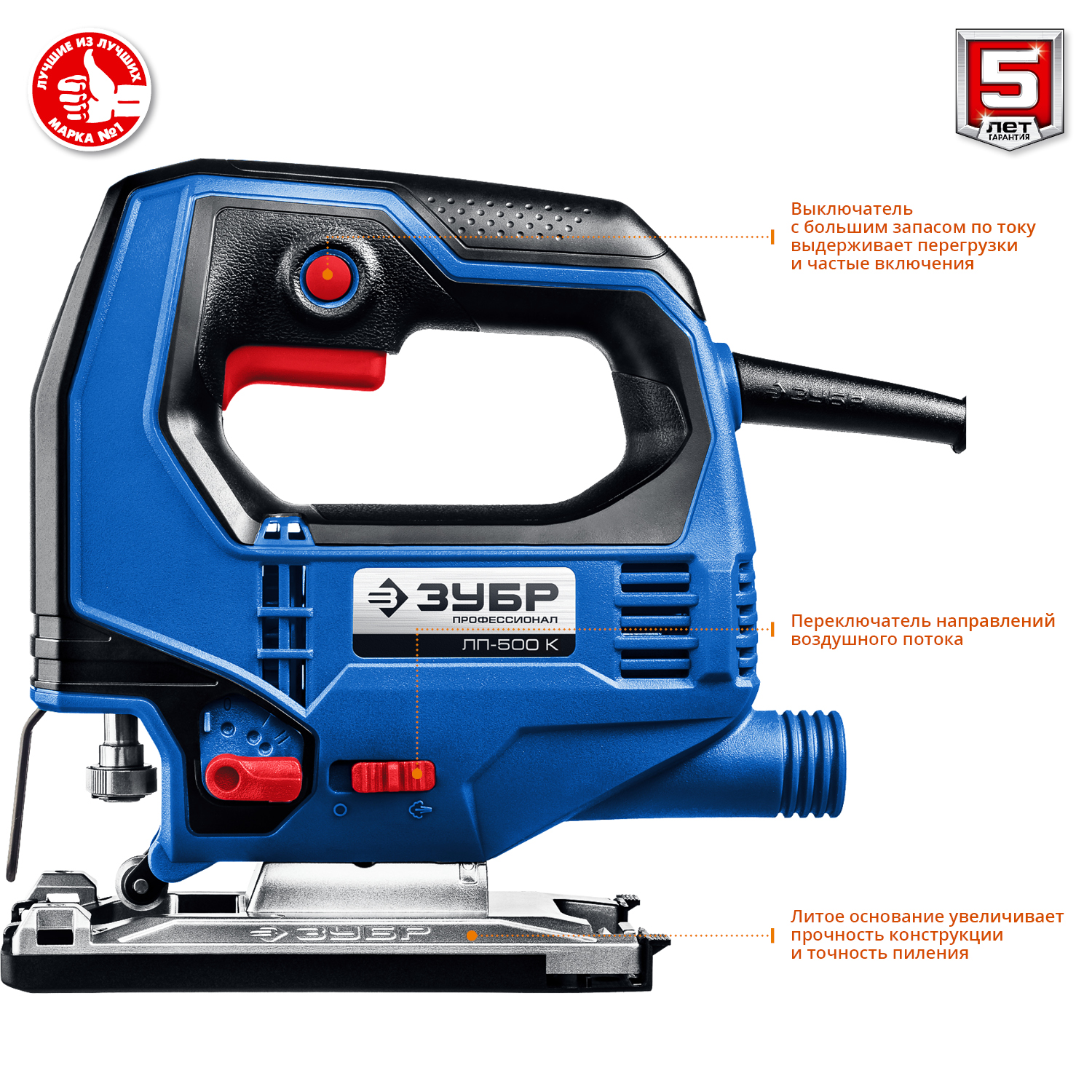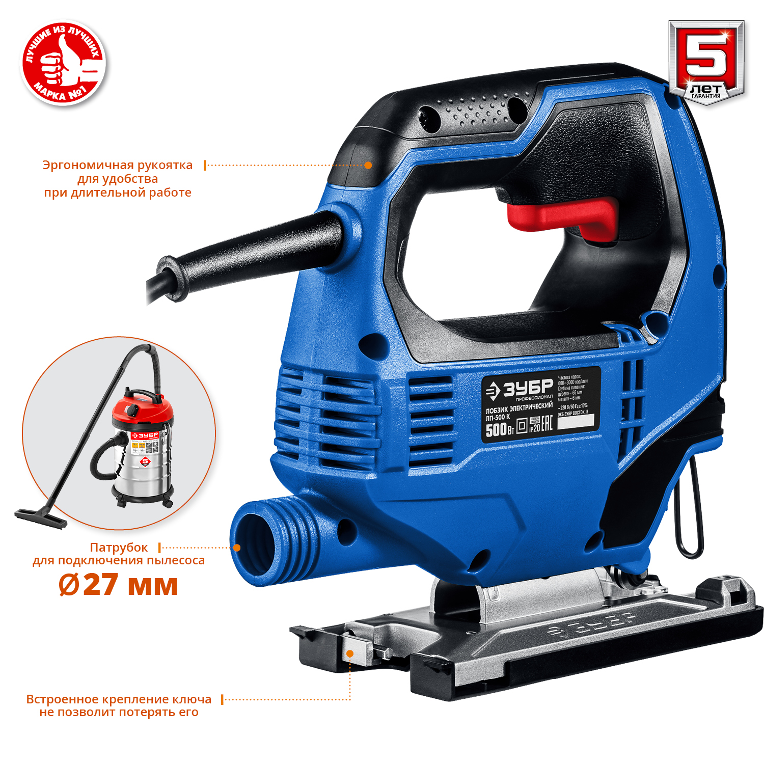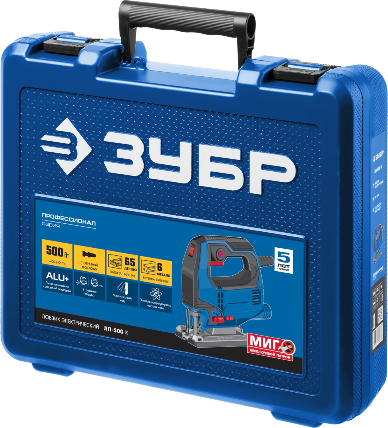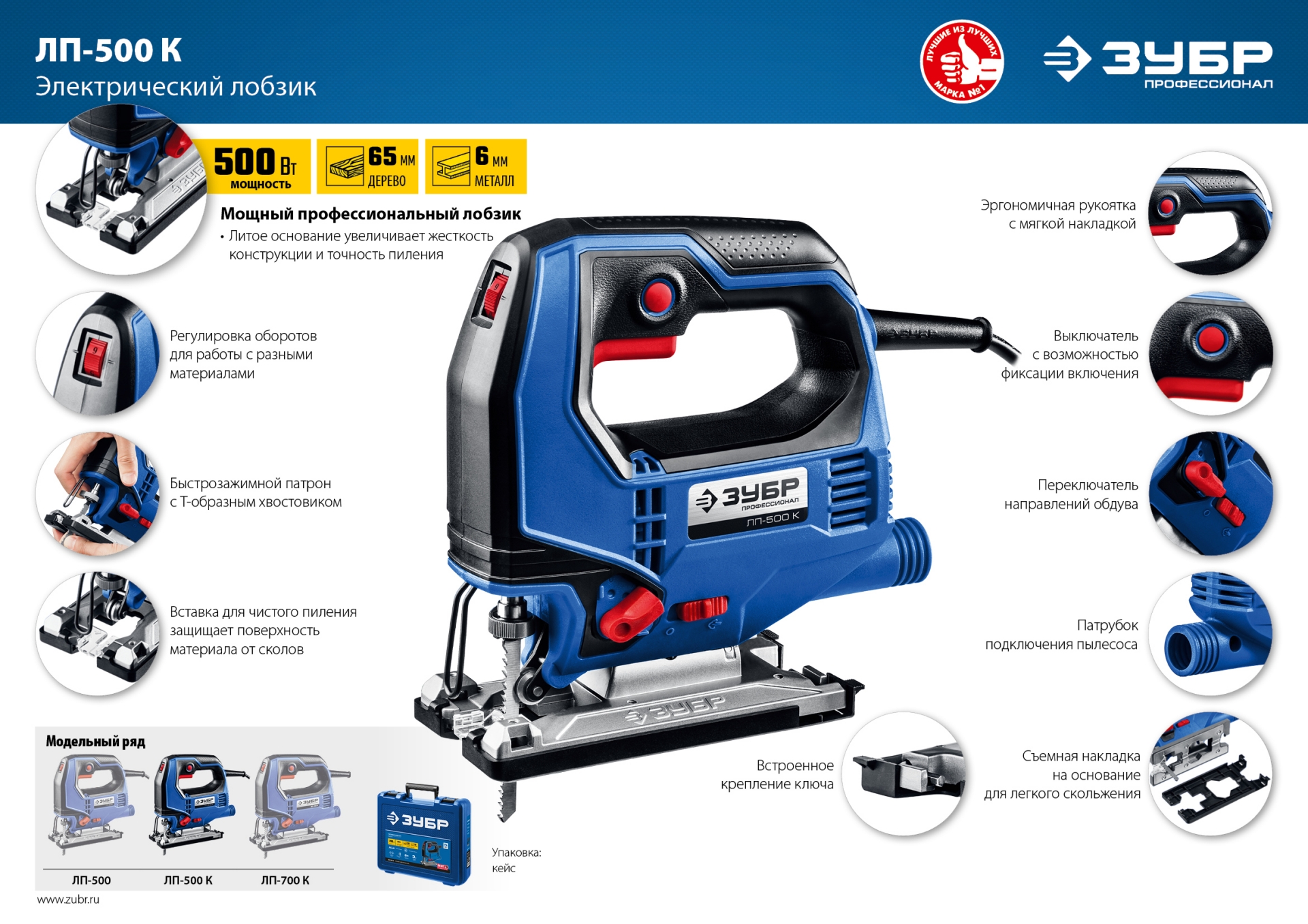 Профессиональный инструмент для всех видов пиления (прямого, наклонного, криволинейного) различных материалов (дерева, фанеры, пластика, металла) от тонких листов до досок толщиной 65 мм. Компактный и мощный, с удобным хватом и отличной маневренностью. Полезные ″мелочи″ вроде вставки для чистого пиления, легко скользящей накладки на основание, встроенного крепления ключа и переключения направлений обдува помогают работать комфортно и эффективно