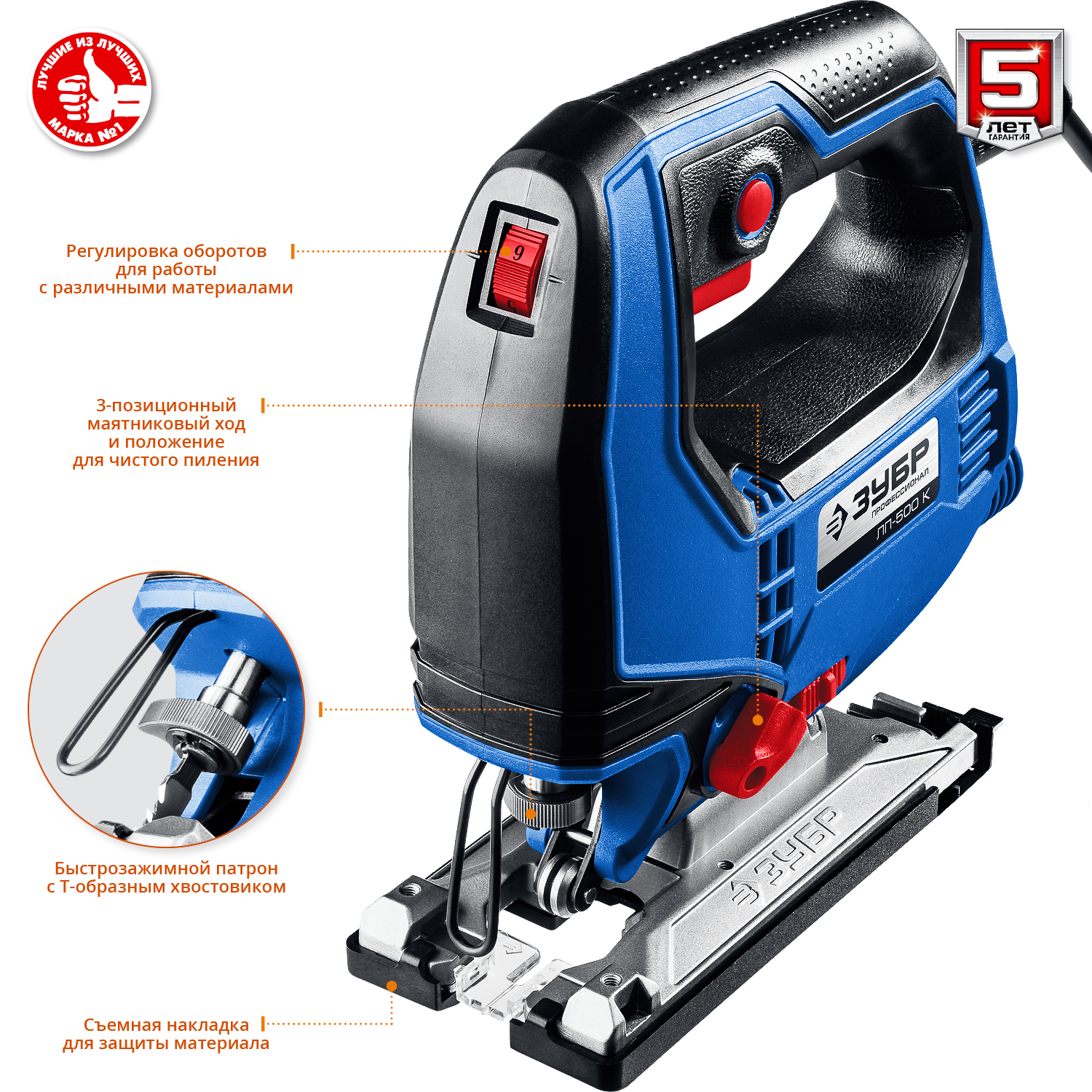 - 3-позиционный маятниковый ход для обеспечения как быстрого, так и чистого пиления