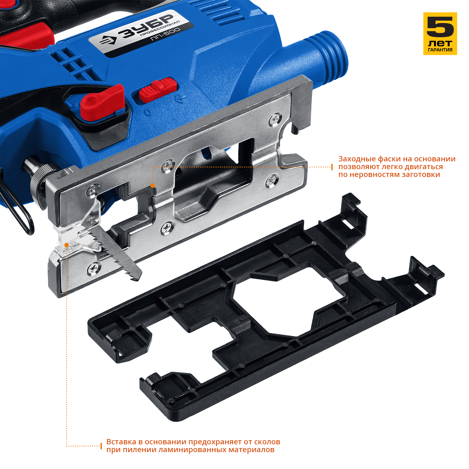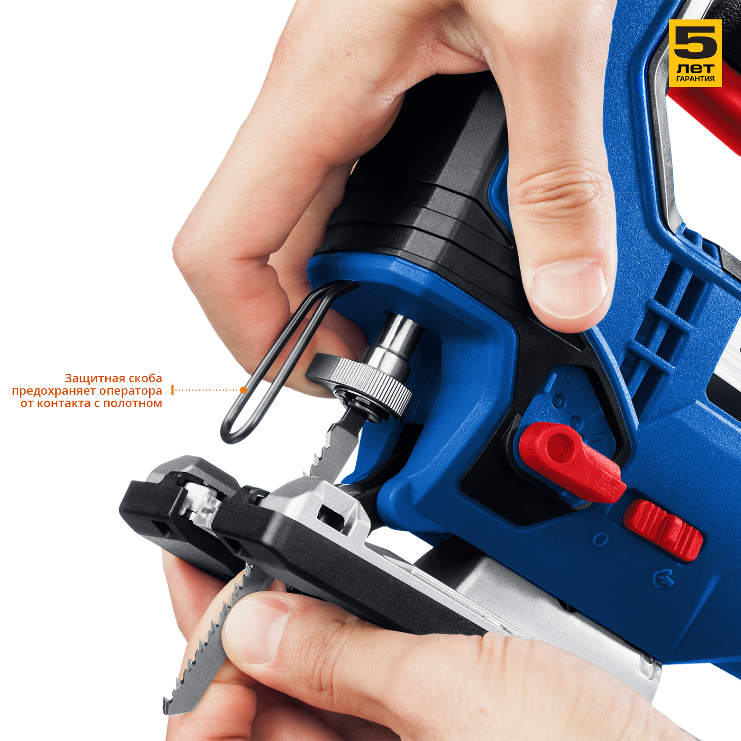 Профессиональный инструмент для всех видов пиления (прямого, наклонного, криволинейного) различных материалов (дерева, фанеры, пластика, металла) от тонких листов до досок толщиной 65 мм. Компактный и мощный, с удобным хватом и отличной маневренностью. Полезные ″мелочи″ вроде вставки для чистого пиления, легко скользящей накладки на основание, встроенного крепления ключа и переключения направлений обдува помогают работать комфортно и эффективно