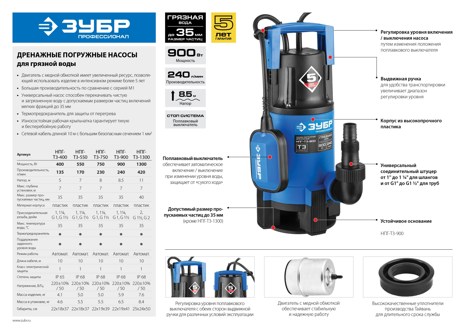 - Двигатель с медной обмоткой имеет увеличенный ресурс, позволяющий использовать изделие в интенсивном режиме более 5 лет
