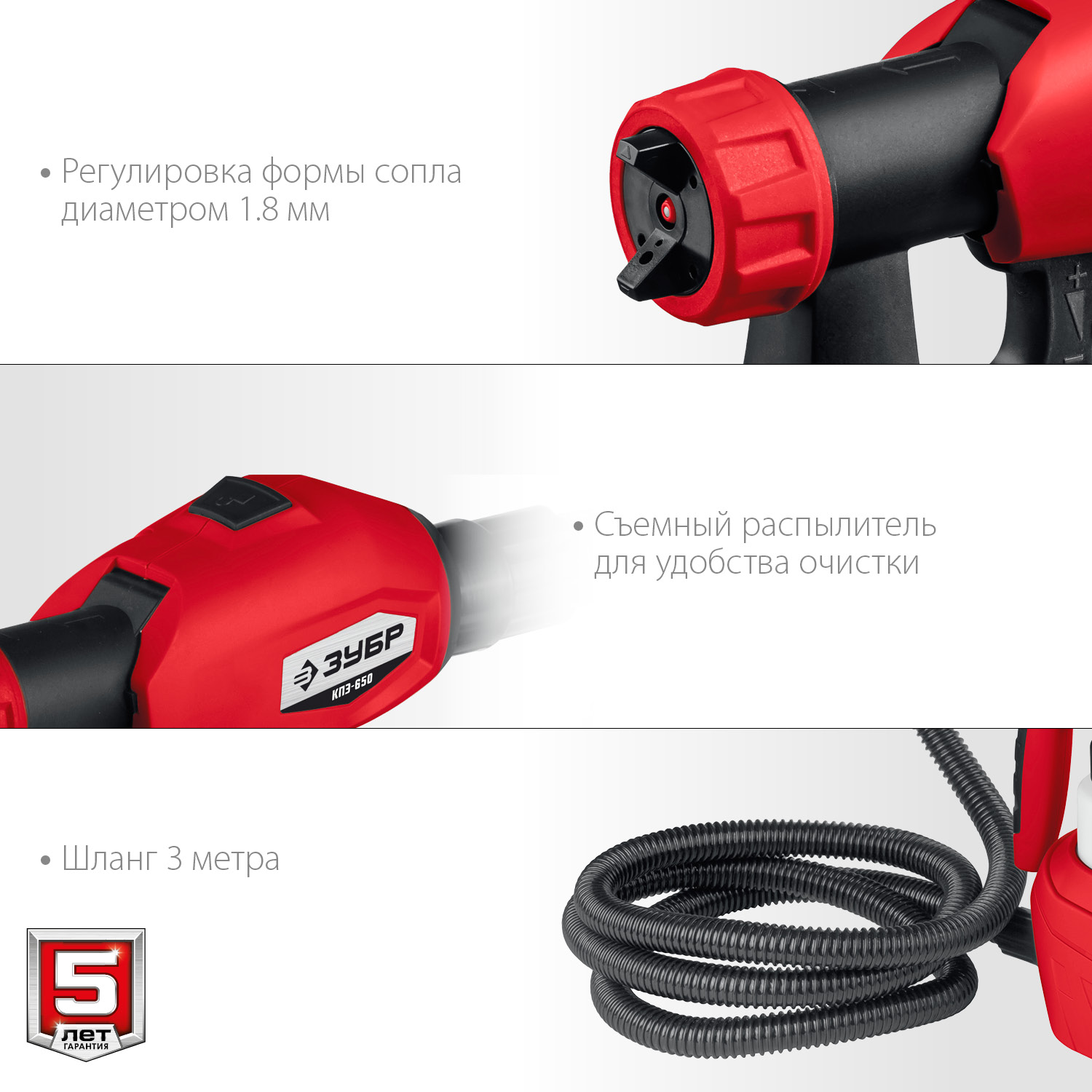 - Регулировка формы сопла для горизонтальной и вертикальной окраски, а также для труднодоступных поверхностей
