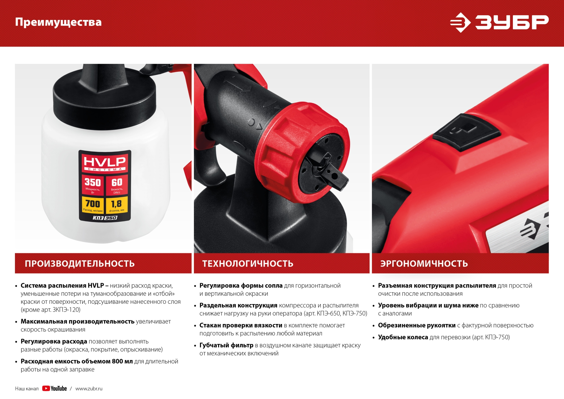 - Минимальные уровень вибрации и шума в сравнении со всеми другими конструкциями краскопультов