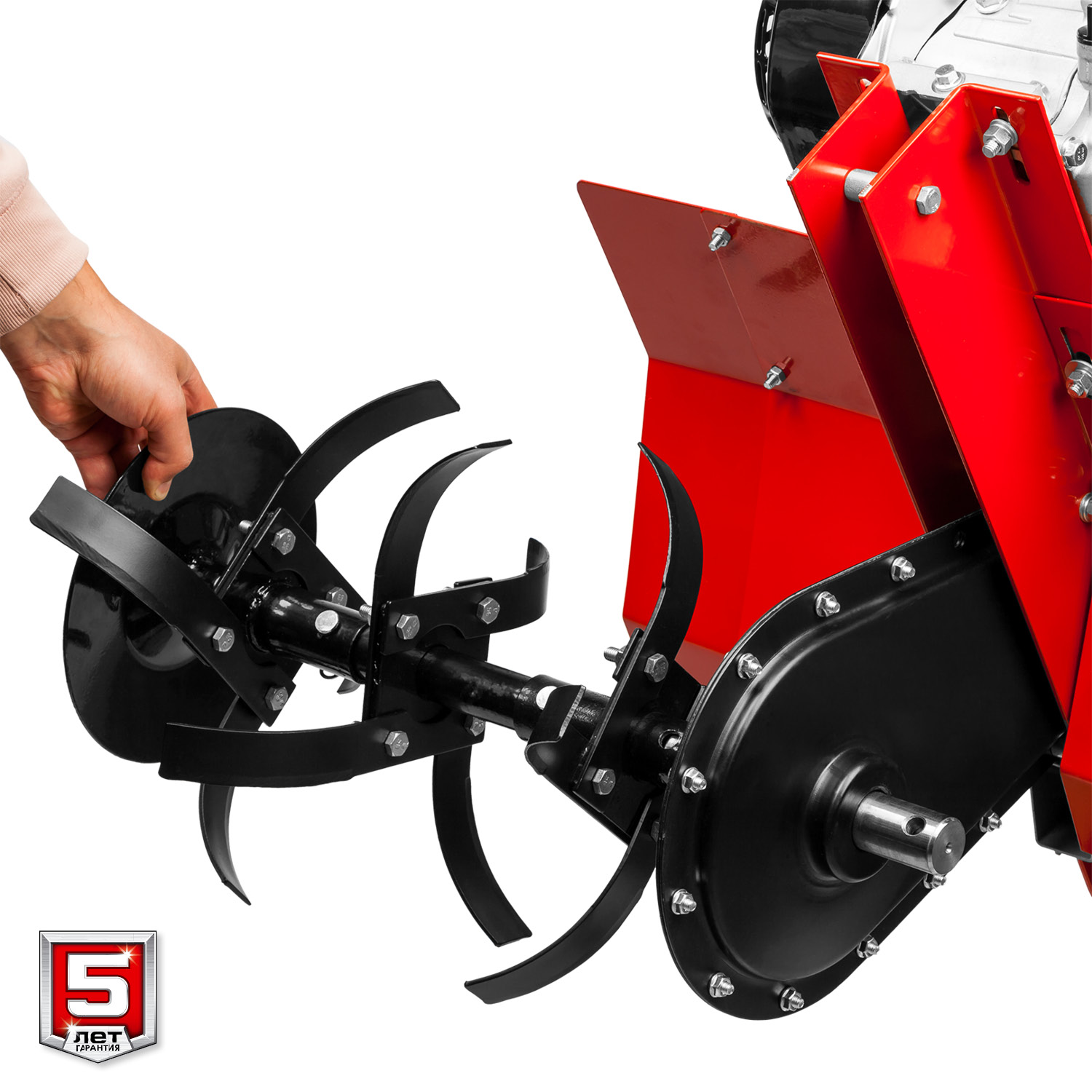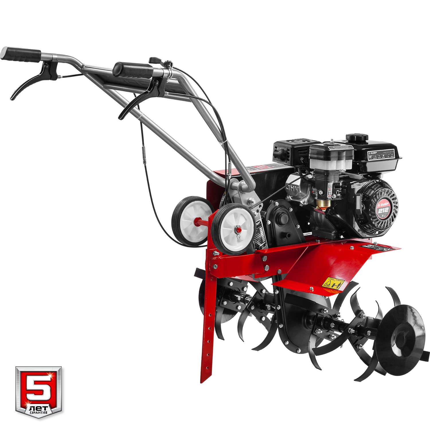 - Рукоять культиватора с возможностью регулировки по вертикали делает управление более комфортным