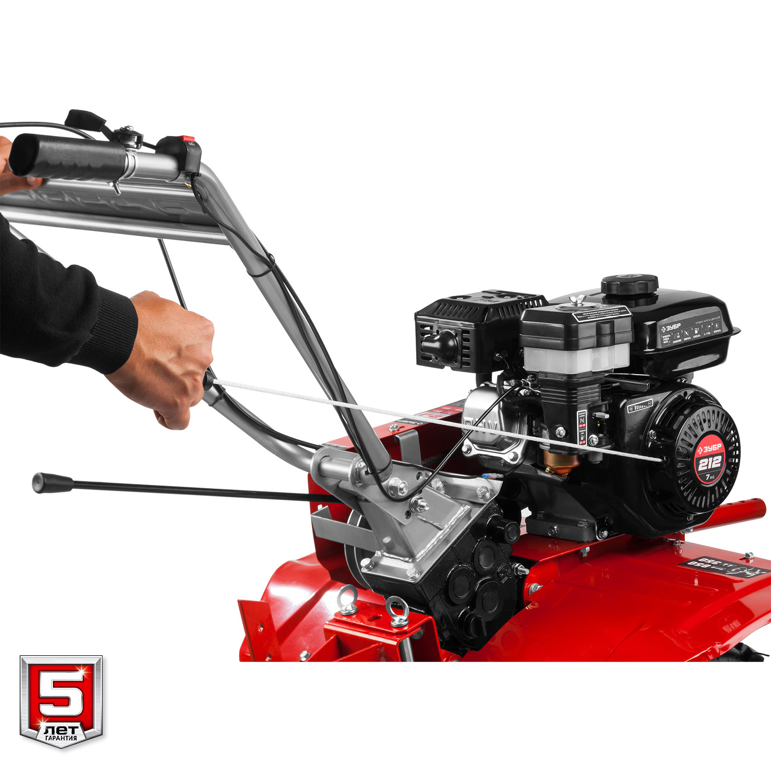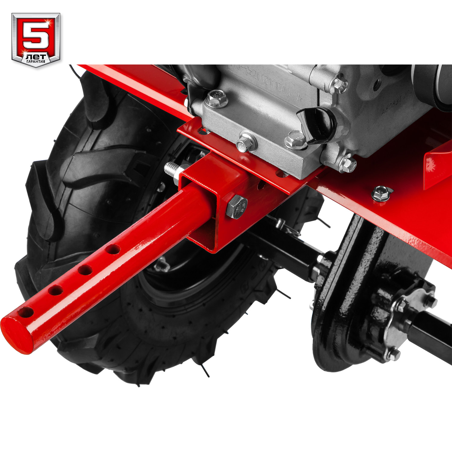 - Рукоять мотоблока с возможностью регулировки по вертикали делает управление более комфортным
