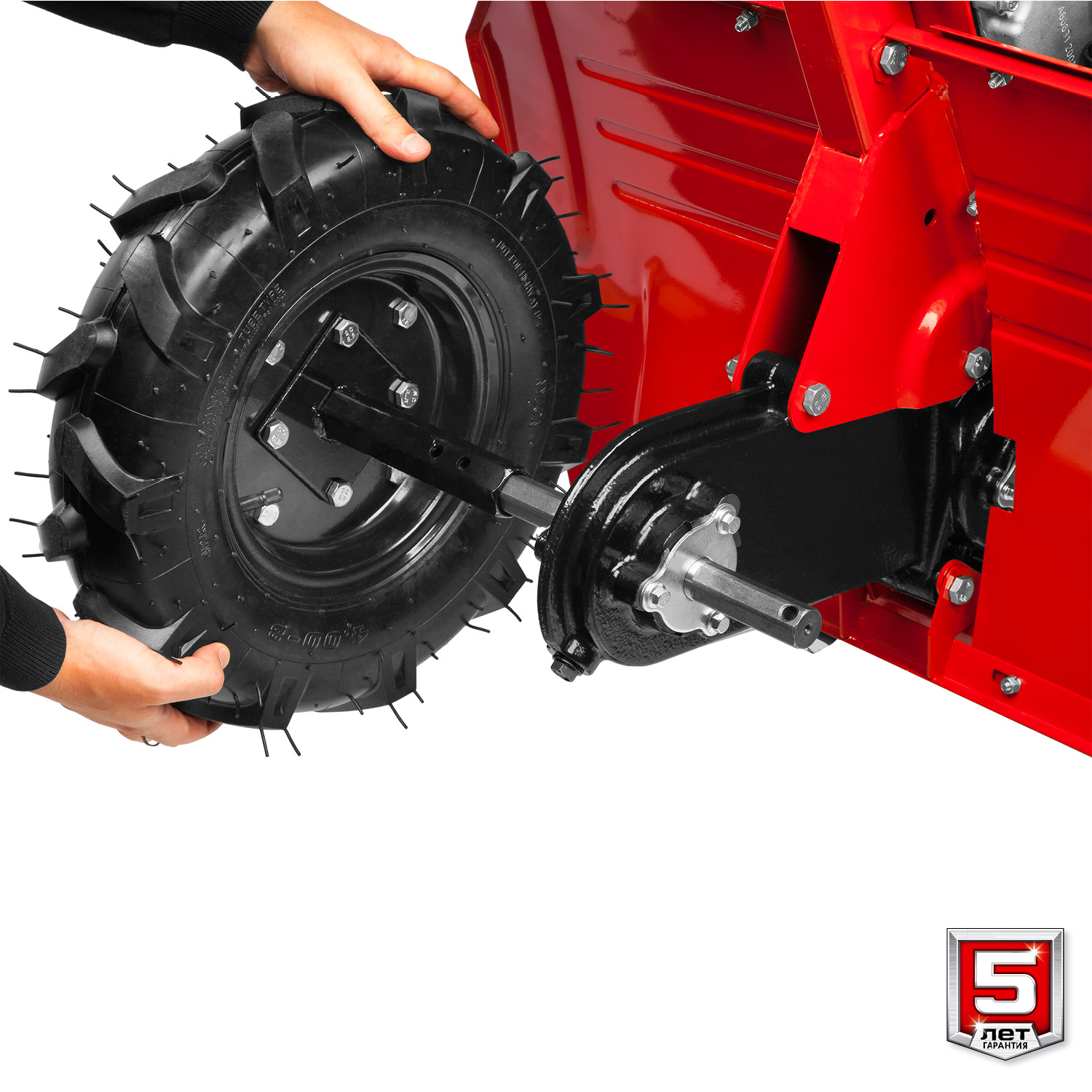 - Большие пневматические колеса обеспечивают отличную проходимость