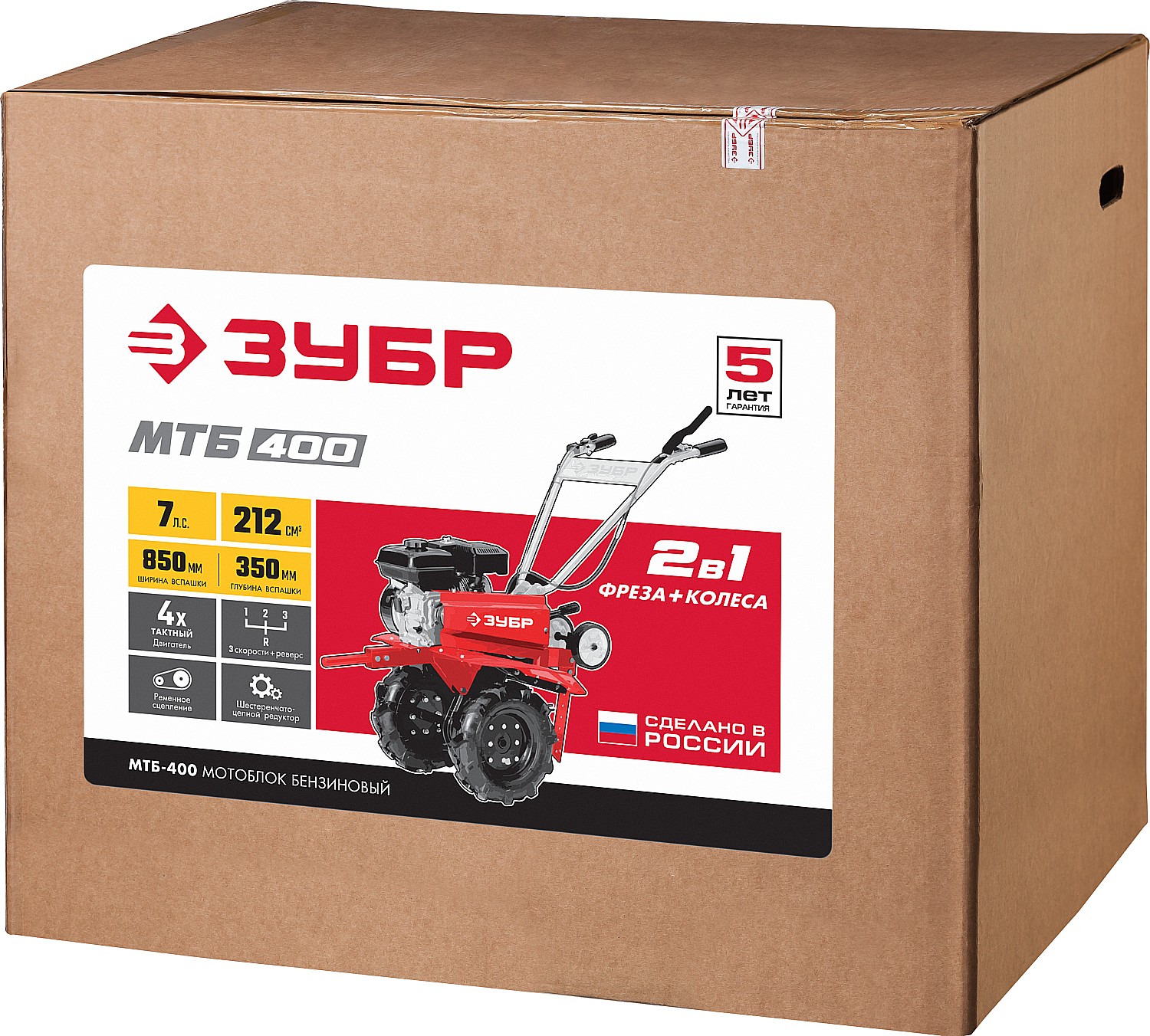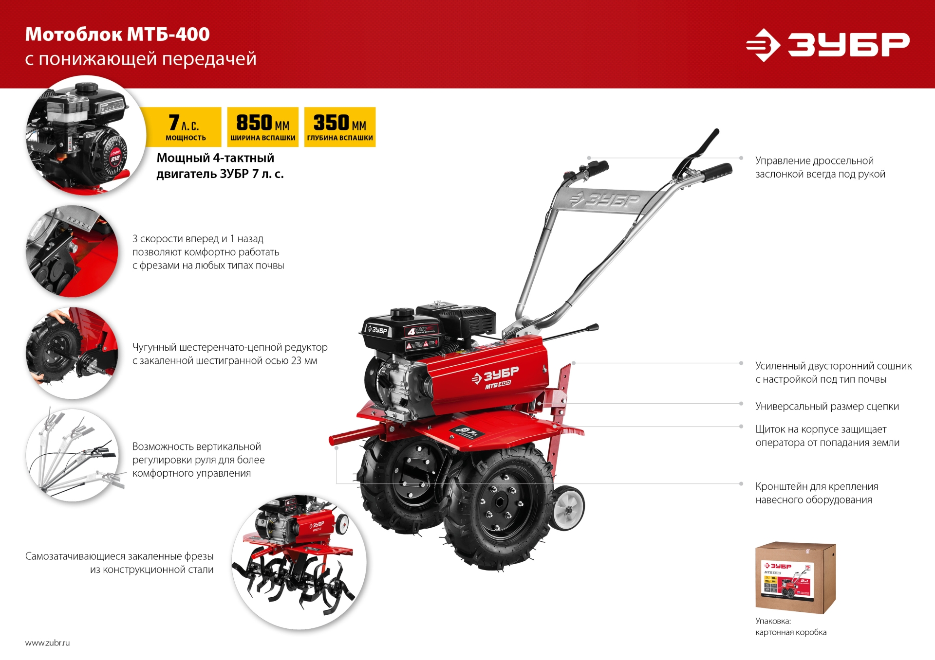 - 3 скорости вперед (понижающая, основная и повышающая) и 1 назад позволяют комфортно работать на любых типах почвы