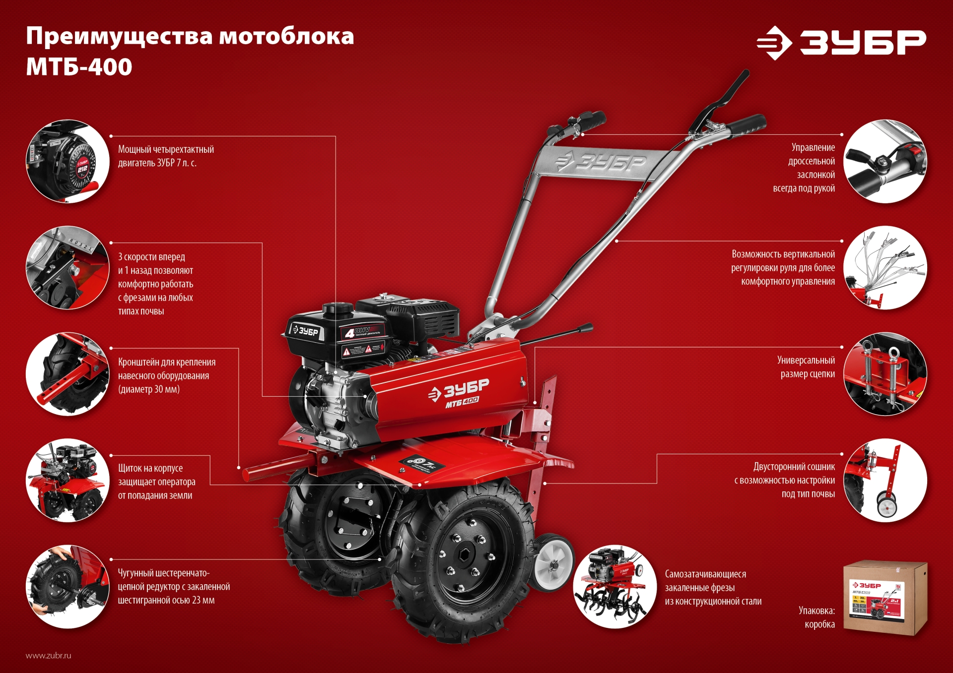 - Конструкция мотоблока позволяет использовать его с различными навесными оборудованием