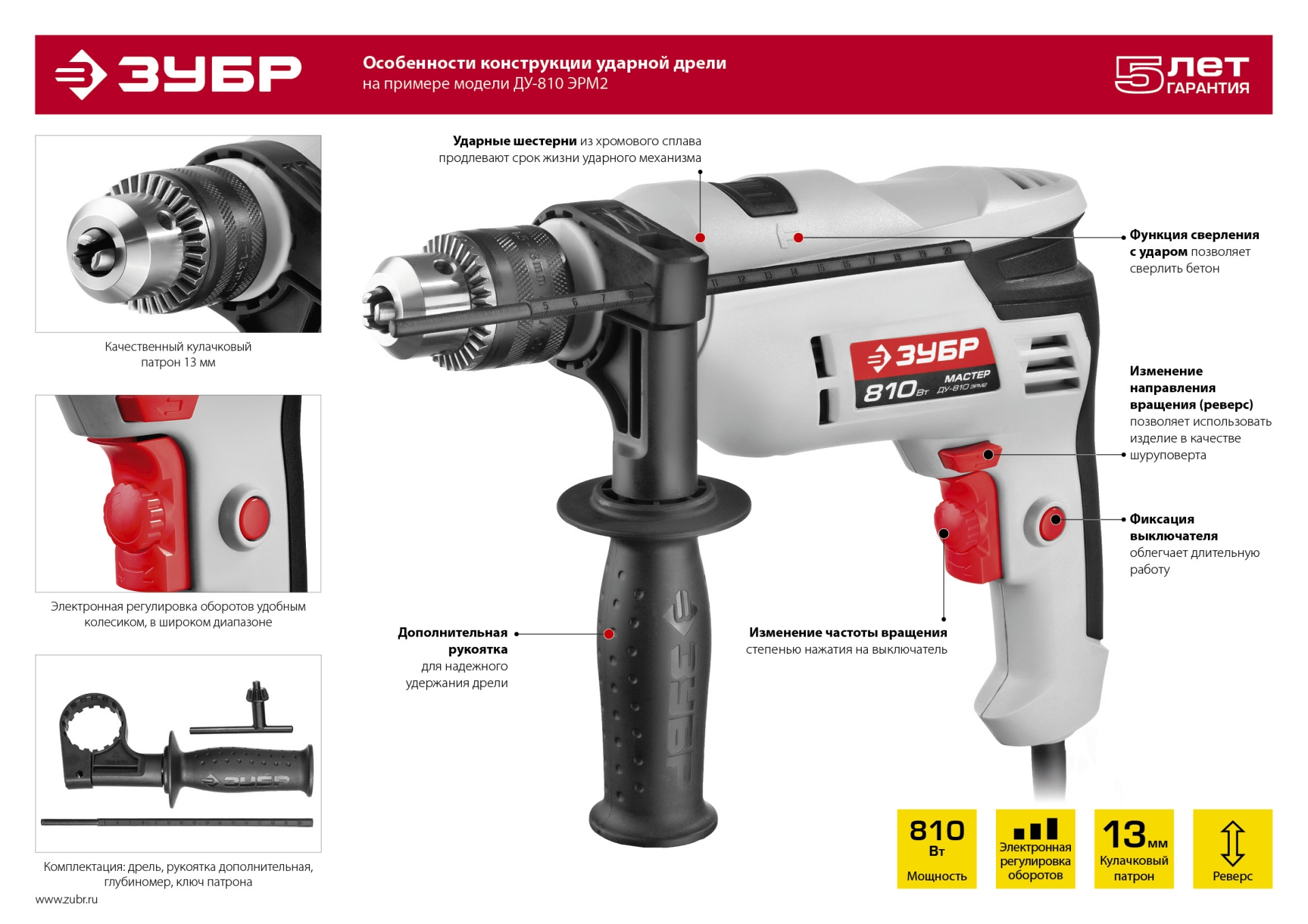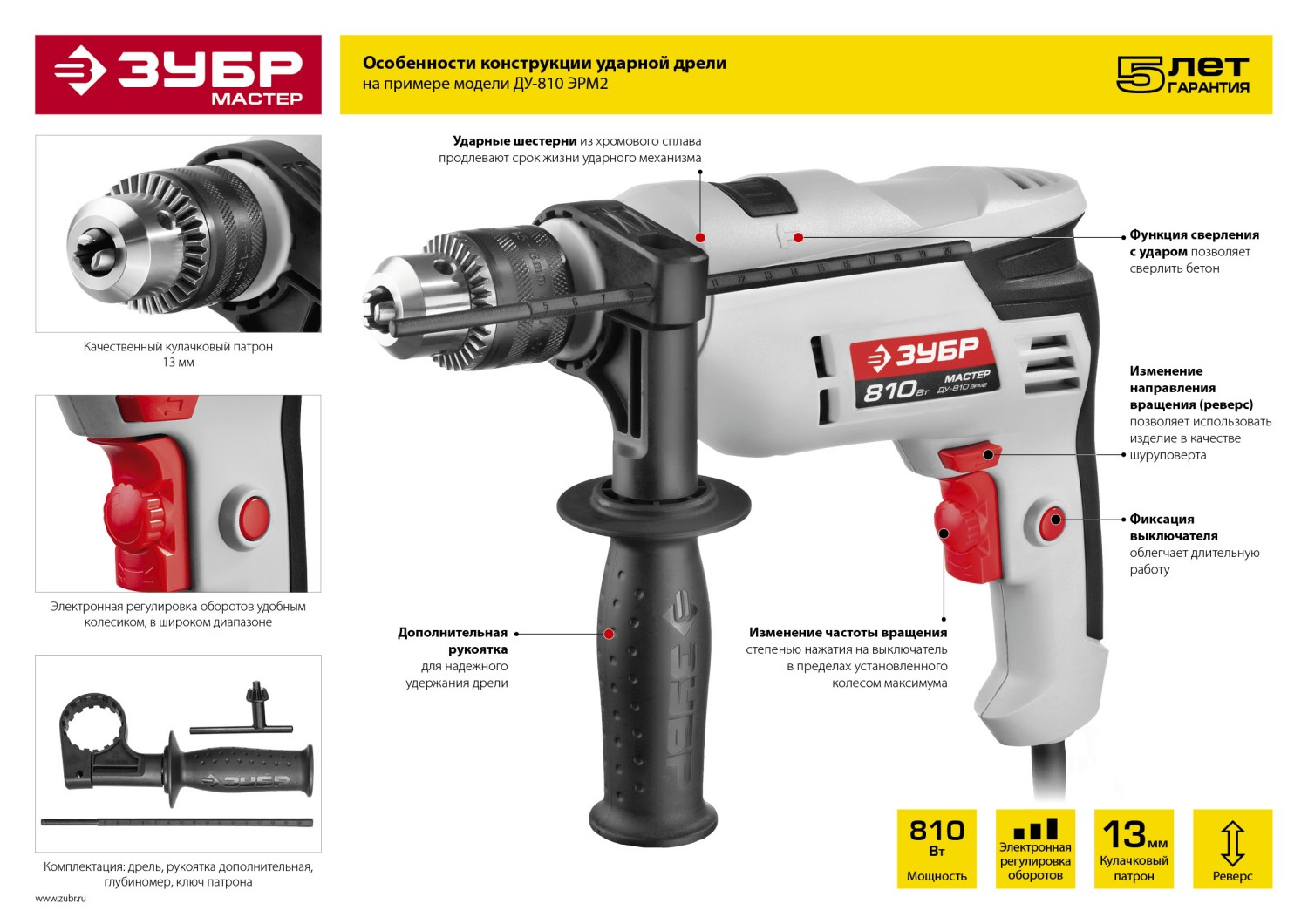 - Ограничитель глубины сверления позволяет бурить точно на заданную глубину при серийной работе