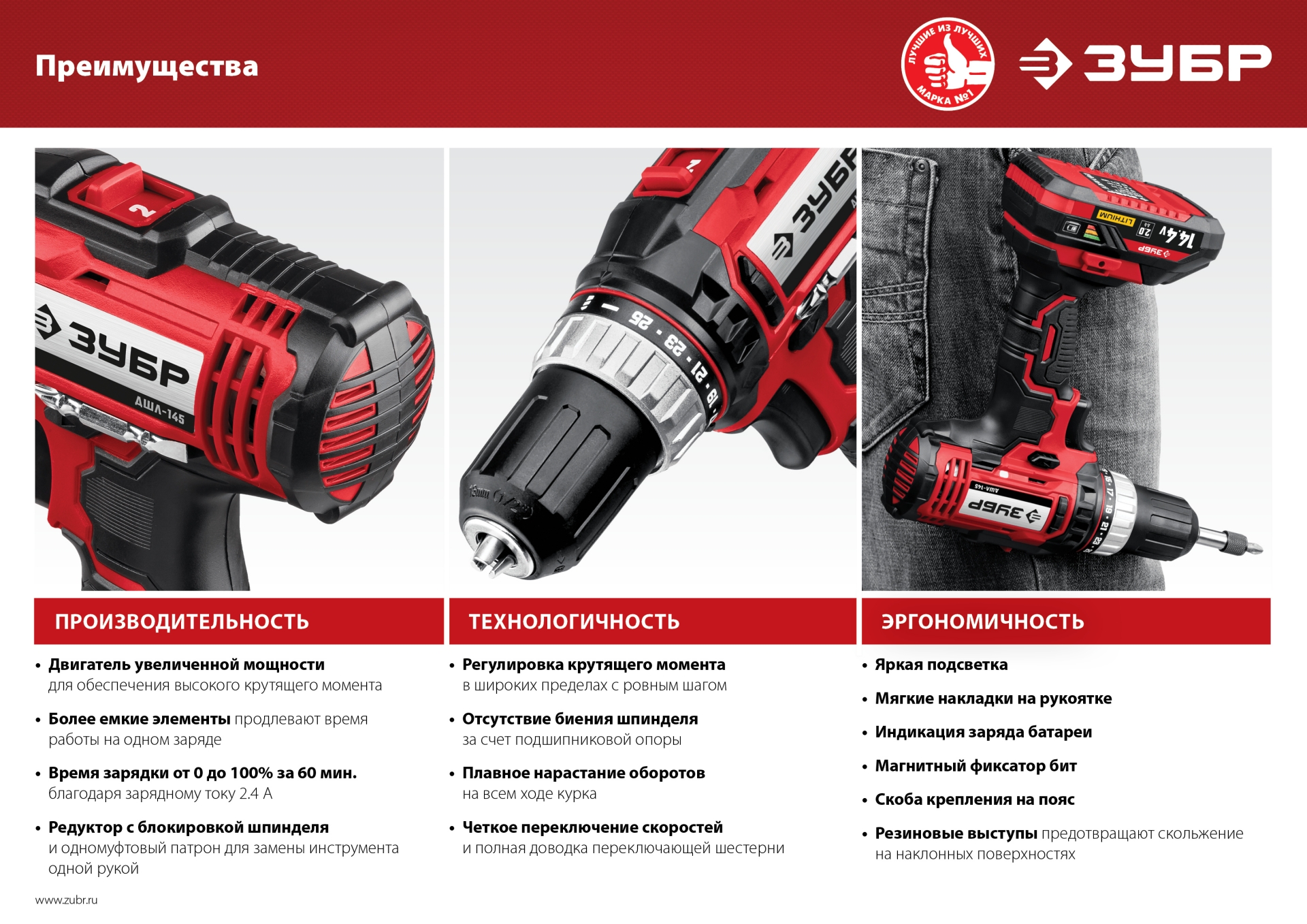 - Двухскоростной планетарный редуктор позволяет как заворачивать с большим крутящим моментом, так и сверлить на высоких оборотах