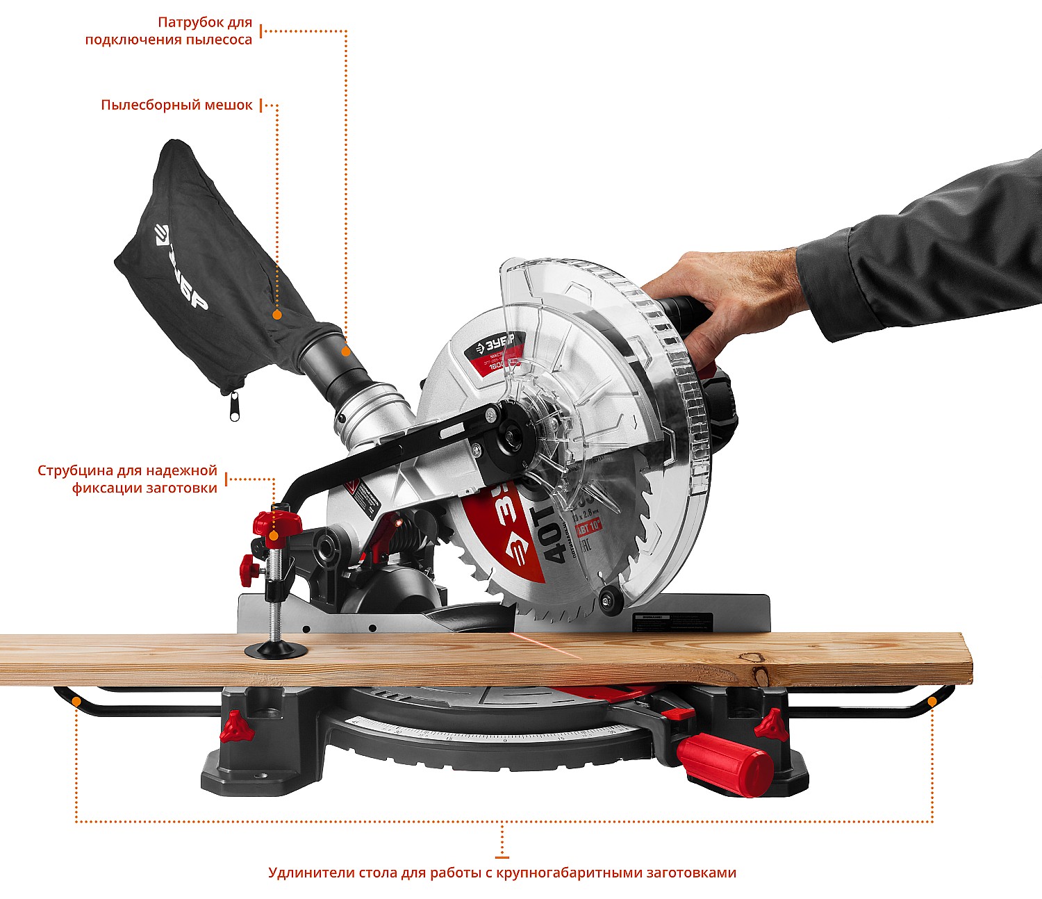 Для прямого, косого, под наклоном и комбинированного пиления заготовок из древесины и ее производных (в том числе с пластиковыми покрытиями), а также тонкого алюминиевого профиля