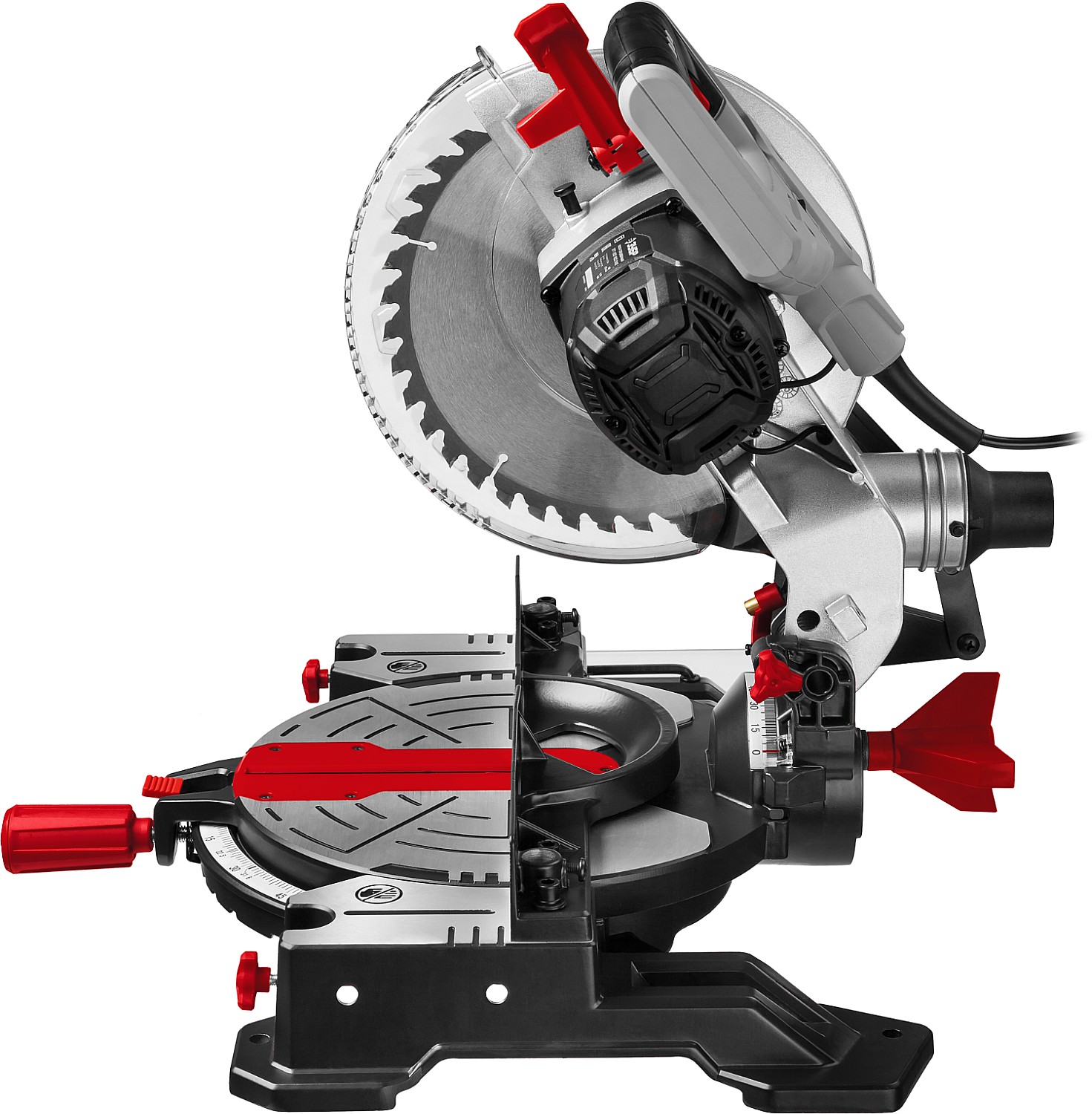- Фиксирующийся в любом положении поворотный стол и удобная регулировка наклона облегчают установку угла пиления