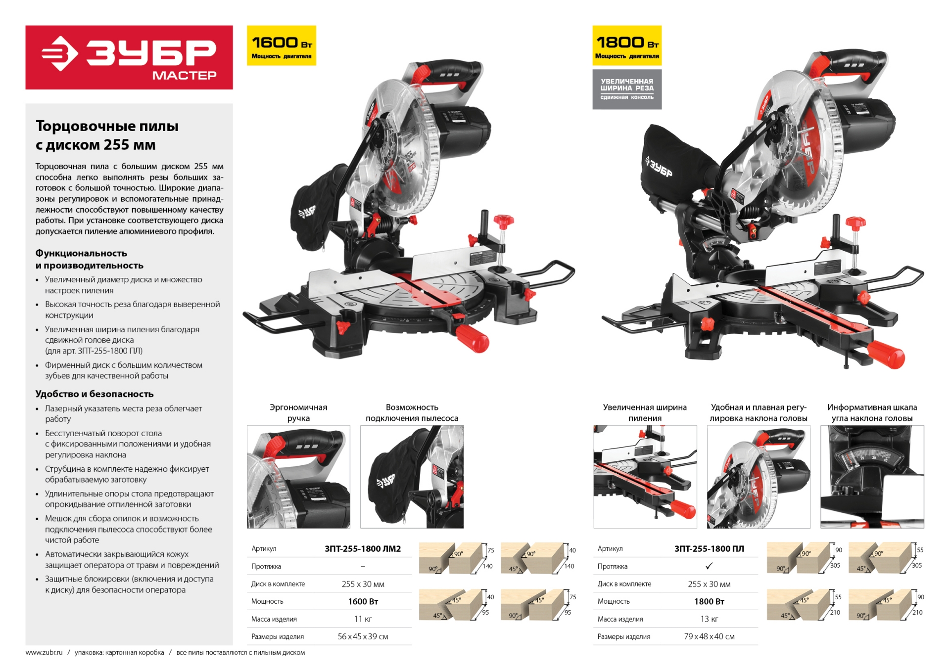 - Увеличенная ширина пиления благодаря сдвижной голове диска и диску большого диаметра,