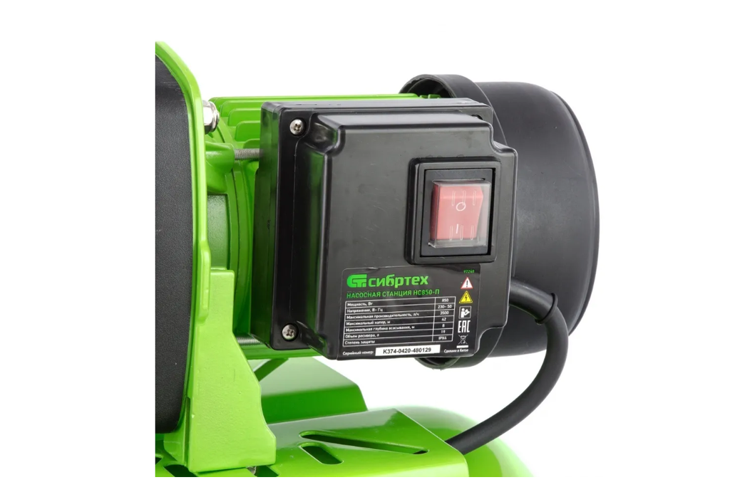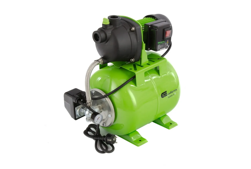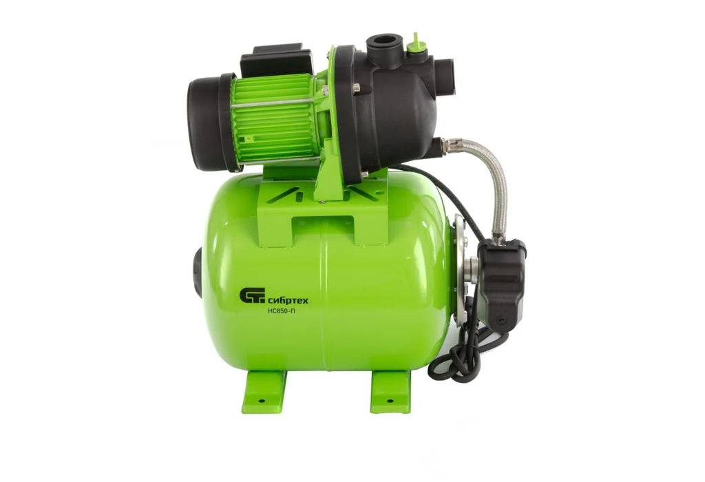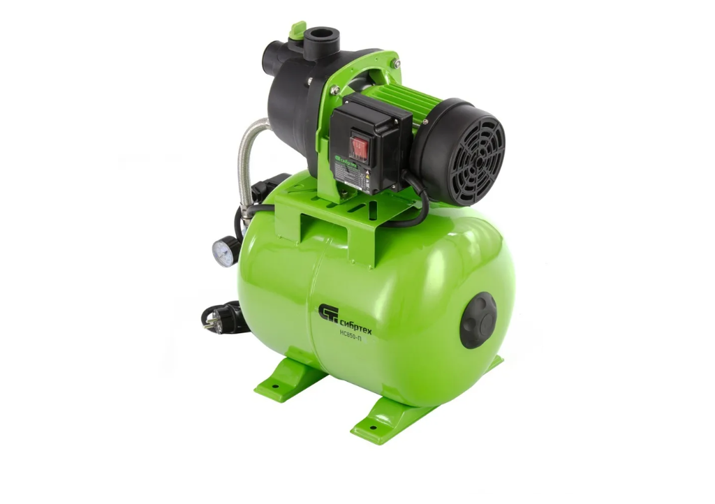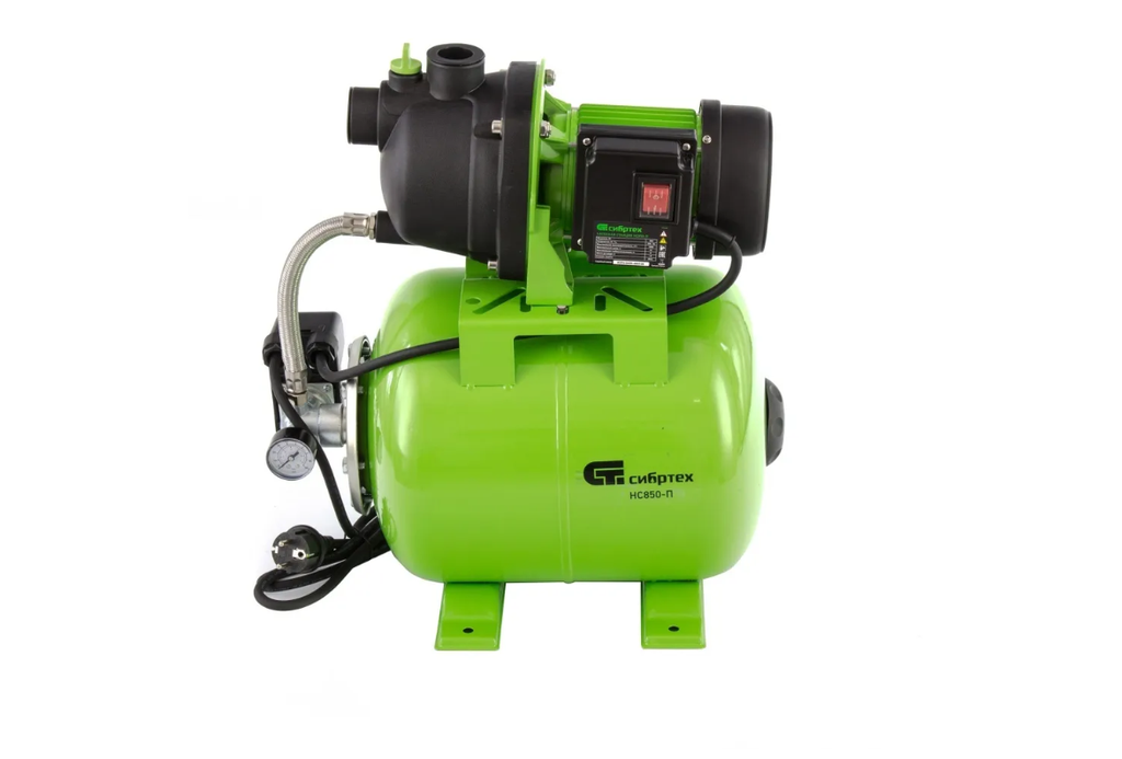 Насосная станция Сибртех НС850-Пмощностью 850 Вт, с ресивером на 19 л, работает со скоростью 3500 л/ч и обеспечивает напор до 42 м. Используется для обеспечения подачи воды в загородных домах, поддержания давления в системе водоснабжения квартир. Однофазный мотор обеспечивает производительность на уровне 58 л/мин под давлением не более 2,8 бар. Станция работает в автоматическом режиме: накапливает воду в ресивере и включается по мере ее потребления. Подача воды также происходит экономно: она поступает к сантехническому оборудованию и кранам только в момент их включения. Пробка заливной горловины легко откручивается, поэтому подготовить насосную станцию к первому запуску не составит труда.