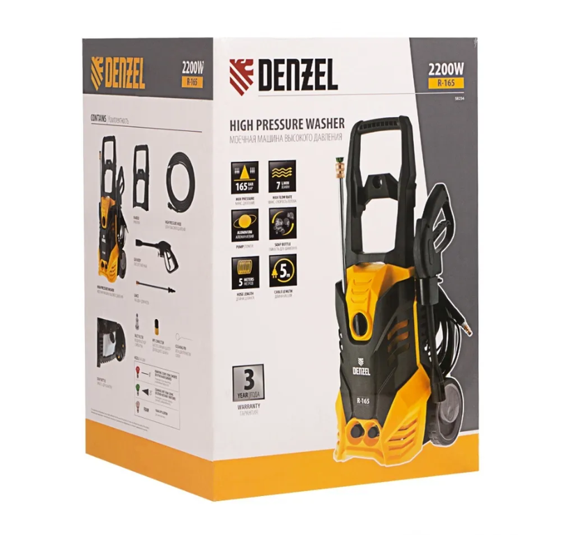 Автомойка высокого давления Denzel R-165 применяется для очищения дорожек, заборов, строений, садового инвентаря и автомобилей от серьезных загрязнений бесконтактным методом. Получить результат как после профессиональной чистки позволяет мощный мотор 2200 Вт и помпа с высокой производительностью 420 л/час и давлением до 165 бар. Отсутствие доступа к водопроводу - не проблема. Благодаря моечной машине легко наладить забор воды из любой емкости благодаря самовсасывающей системе, которая теряет всего 5% давления. Алюминиевая помпа минимойки со стальными плунжерами и высокой точностью подгонки деталей обеспечивает надежность и стабильное давление на выходе.
