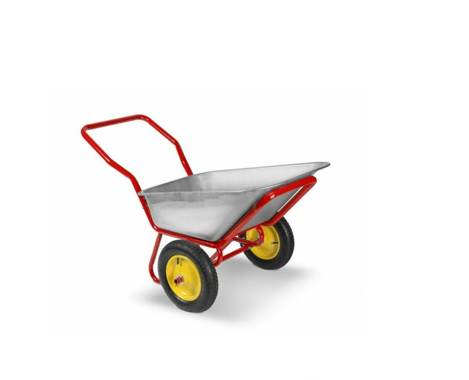 Строительная тачка ВАРЯГ-ТСт 110/2П предназначена для перевозки строительных материалов, растворов и мусора. Тачка имеет П-образная ручку, что обеспечивает простое и удобное управление. Грузоподъемность до 300кг обеспечена наличием прочной рамы. Для повышения устойчивости при перевозки тяжелых грузов предусмотрено два пневматических колеса. Корыто оцинковано, толщина его стенок составляет 0.9 мм, что гарантирует длительный срок службы.
