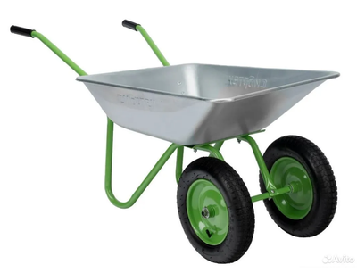 Двухколесная садовая тачка Сибртех грузоподъемностью 120 кг, с объемом кузова 65 л, служит для транспортировки легких грузов при выполнении садовых и сельскохозяйственных работ.