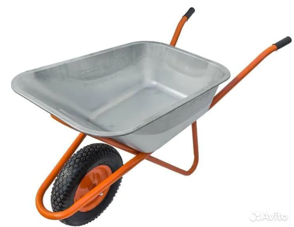 Тачка строительная одноколесная PRO-100 - тачка строительная, предназначена для перевозки сыпучих грузов, строительного и бытового мусора, кирпичей, растворов, мешков с цементом. Благодаря усовершенствованной конструкции и пневматическому колесу на подшипнике тачка очень маневренна, легко управляется, быстро двигается даже по не ровной, бугристой поверхности. Тачка садово строительная проста в эксплуатации, легко собирается и разбирается, благодаря тому, что состоит всего из двух частей.