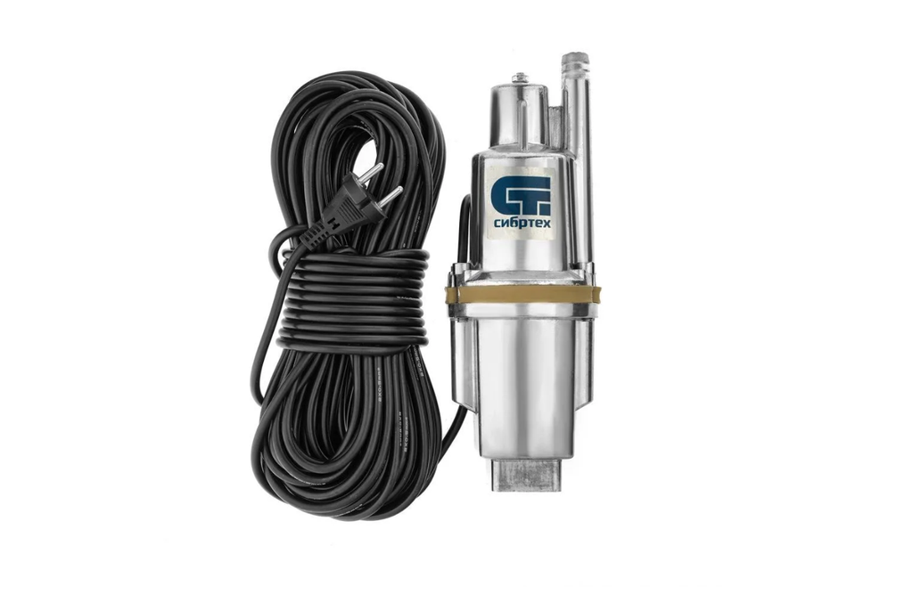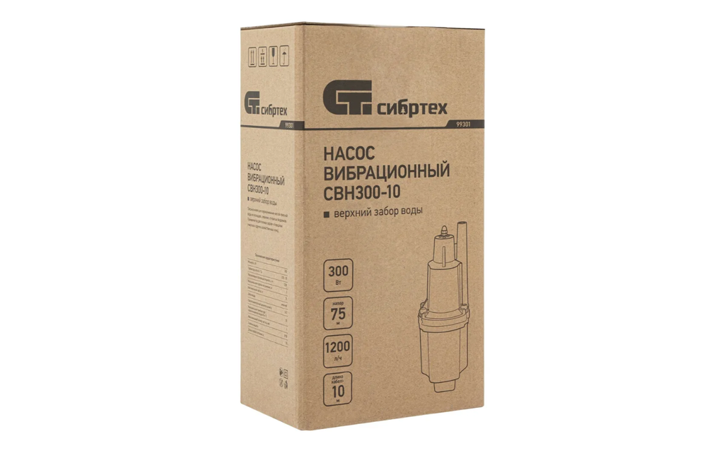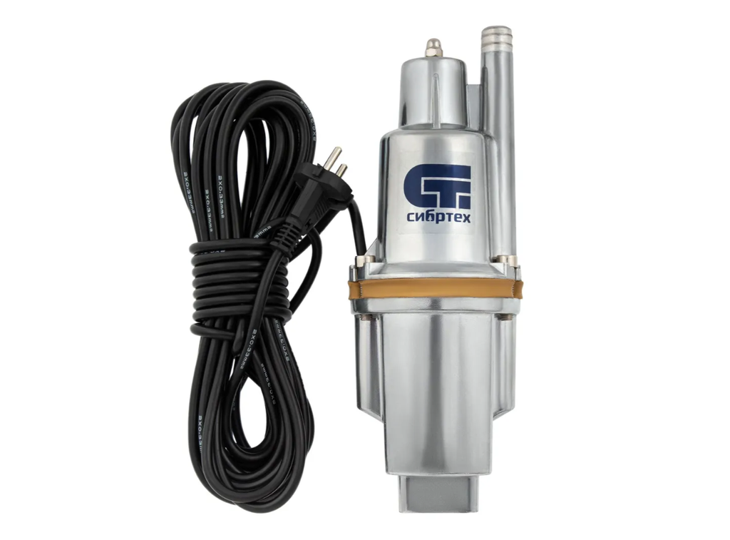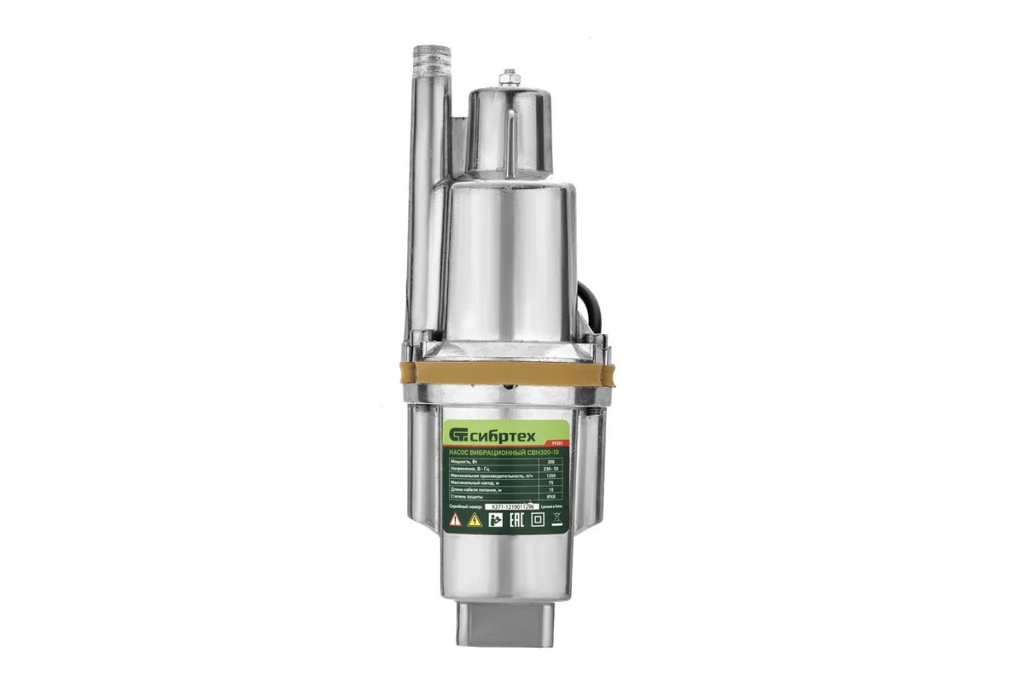 Насос вибрационный погружной СИБРТЕХ СВН300-10, верхний забор, 300 Вт, 1200 л/ч, напор 75 м и максимальная глубина погружения 5 м, алюминиевый корпус
