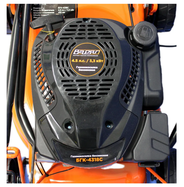 Бензиновая газонокосилка Варяг БГК-4318С (3,3кВт/4,5л.с., 3000об/мин, захват 41см, 40л, 4Т/АИ-92, самоход) предназначена для обработки площадей до 1000 м2. Колеса увеличенного диаметра легко перемещаются по газону (диаметр колес передних/задних - 180/230мм). Ширина обработки за один проход составляет 41 см. Для того, чтобы сохранить ухоженный вид, не стоит срезать за один проход более 1/3 от высоты газона. Колеса на подшипниках гарантируют высокую надежность, свободный ход и длительность эксплуатации, также они более устойчивы к вибрации, чем колеса на втулках.