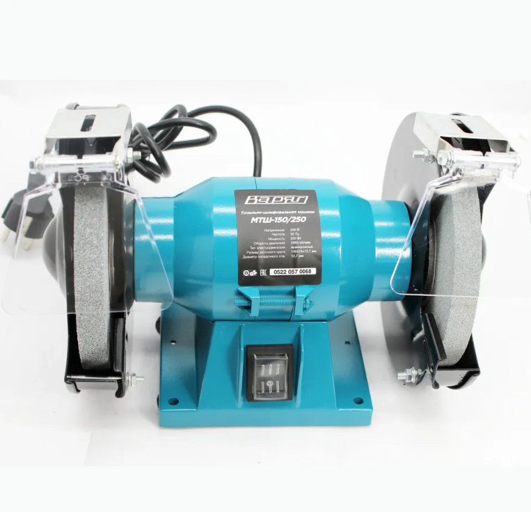 Точильный станок станок ВАРЯГ МТШ-150/250 применяется в слесарных и столярных мастерских, а также в домашнем хозяйстве для заточки инструментов и грубой шлифовки различных материалов.Электроточило укомплектовано мощным асинхронным двигателем мощностью 250 Вт и частотой вращения 2950 об/мин с увеличенным ресурсом. Отличную заточку инструментов обеспечивают качественные круги, диаметром 150 мм и шириной 16 мм с различной зернистостью . Оба диска оснащены рабочими упорами (подручниками). Защитные кожухи из листовой стали и искрозащитные экраны из пластика защищают оператора от искр и абразивов. Установку оборудования производят на верстак через монтажные отверстия. Имеет компактный корпус и малый вес, что удобно для транспортировки. Прочный металлический корпус устойчив к механическим повреждениям. Выключатель заточного станка надежно защищен от пыли.
