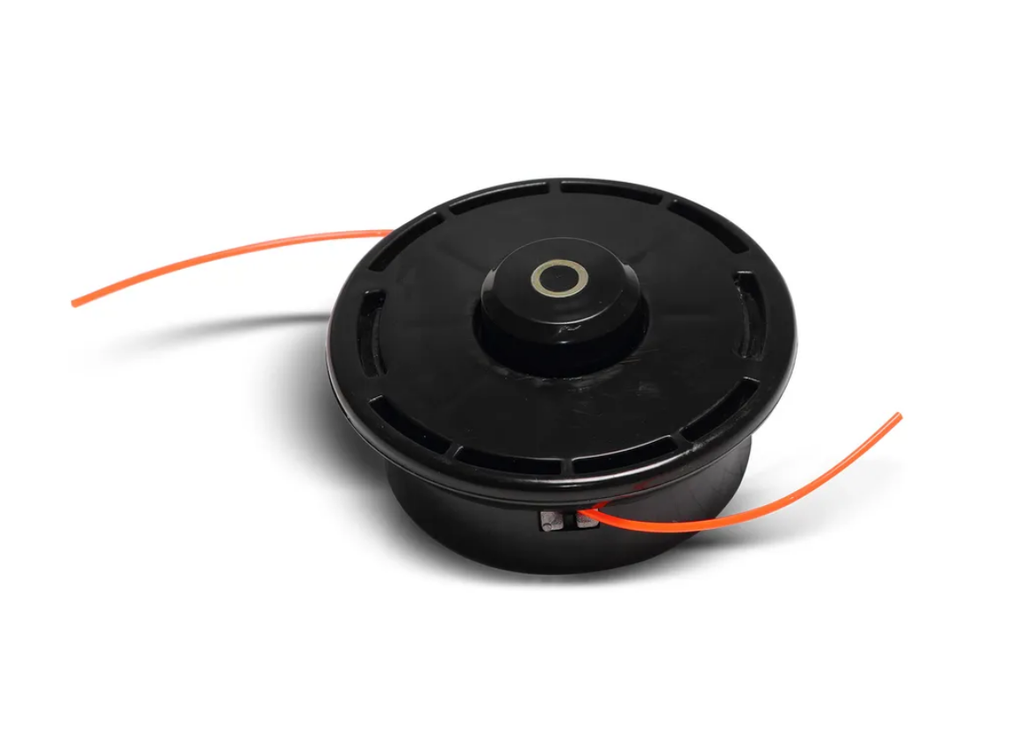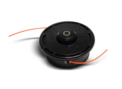 Триммерная головка является главной рабочей частью садового триммера, без которой его работа станет невозможной также головка, представляет собой специально сконструированную катушку, внутри которой размещен корд определенной длины. На внутреннюю шпулю наматывается кусок корда в 8-15 м, концы которого вытягиваются из катушки на требуемую длину по мере износа или обламывания при встрече со слишком твердым препятствием.Триммерные головки принято подразделять по типу подачи лески на ручные, полуавтоматические и автоматические. У первых, как понятно уже из самого названия, леска подается из головки вручную. Для этого придется прекратить работу, выключить триммер и вручную удлинить концы корда.Для вторых достаточно приложиться катушкой о землю. В этом случае посредством нажатия при ударе на специальную кнопку происходит освобождение анкерного механизма и подача корда за счет центробежной силы. Удлинение лески осуществляется при работающем триммере.В третьем варианте для удлинения режущего корда следует просто снизить обороты двигателя, затем при последующем увеличении оборотов осуществляется автоматическая подача триммерной лески.