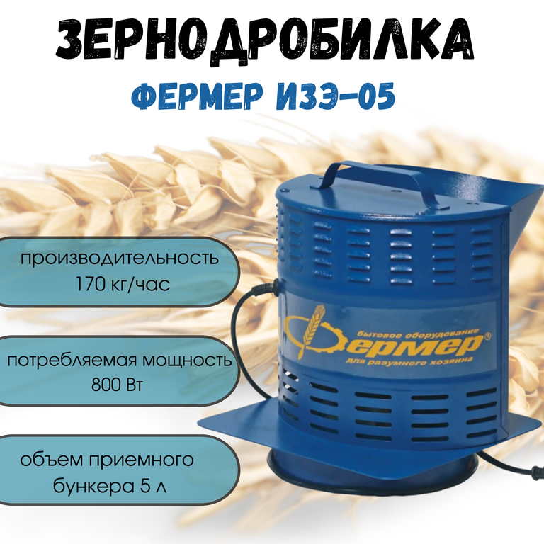 Зернодробилка Фермер ИЗЭ-05 предназначена для переработки зерновых культур в корм для домашней скотины. Удобная и безопасная конструкция, проверенная временем, заслужила доверие среди покупателей, благодаря легкой эксплуатации, компактным габаритам и небольшому весу. Два вентилятора, установленные в двигатель, обеспечивают защиту от перегрева и скачков напряжения. Подшипники двигателя защищены специальным пыльником, за счёт чего оборудование сможет работать при запылении, что продолжит срок полезной эксплуатации. Нож из пружинно рессорной стали проходит термообработку, что придает инструменту повышенную прочность.