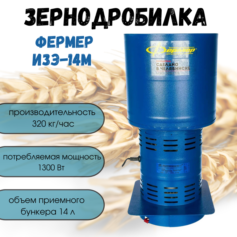 Зернодробилка Фермер ИЗЭ-14М (320 кг/ч)- мощный измельчитель небольших размеров с очень простой установкой. Прекрасный помощник в личном фермерском хозяйстве. Отличается высокой производительностью.