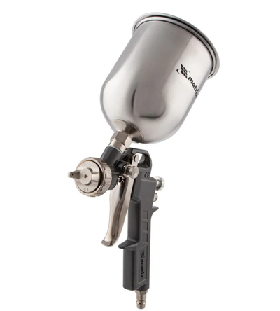 Используется для окрашивания поверхностей и нанесения защитных составов. Он может работать с различными составами, такими как шпаклевка, лак и краска, т. к. в комплекте идет набор сменных сопел различного диаметра. Краскораспылитель пригодится в автосервисе или на стройке, а также на мебельном производстве для обработки дерева лаком.