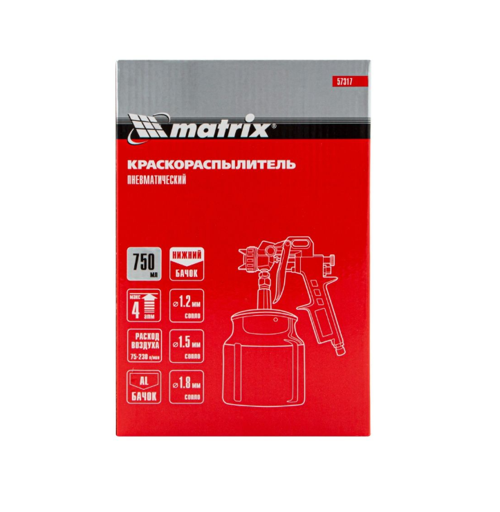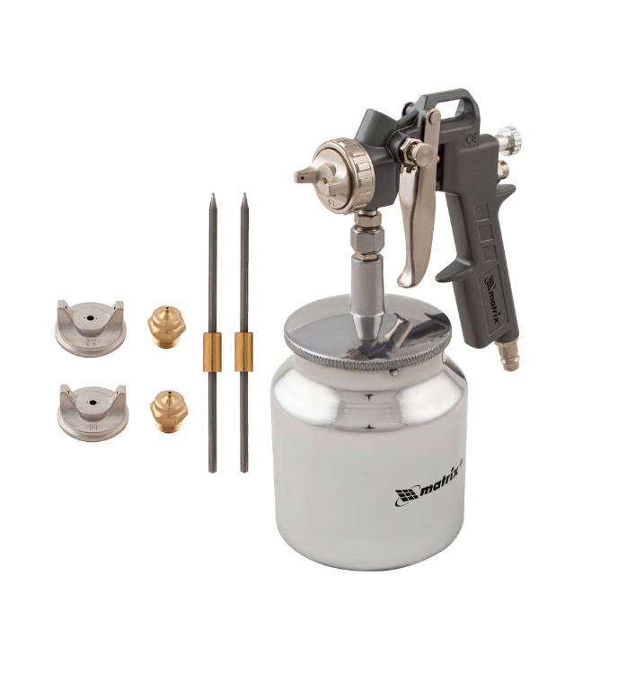 Краскораспылитель пневматический Matrix с нижним бачком V=0,75 л, сопла диаметром 1.2, 1.5 и 1.8 мм