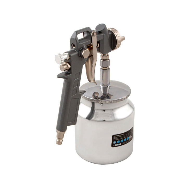 Используется для окрашивания металлических, деревянных, керамических и пластмассовых поверхностей. Благодаря сменным соплам краскораспылитель может работать с различными по густоте составами: лаком, шпаклевкой, краской. Он пригодится на стройке, в автомастерской и на мебельном производстве
