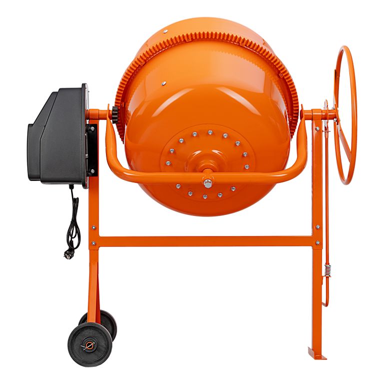 Двигатель мощностью 1000 Вт обеспечивает высокую производительность, при этом не создает значительной нагрузки на электросеть. Бетоносмеситель пригодится для проведения строительных работ небольшого объема.