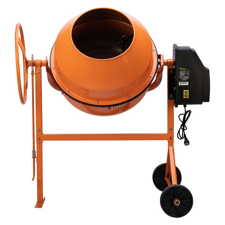 Бетономешалка строительная СИБРТЕХ БСЕ-160П, 160 л, 700 Вт, полиамидный венец из 5 частей и термозащита, фиксация угла наклона барабана, бетоносмеситель строительный