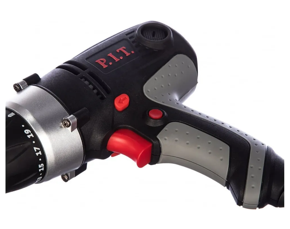 Быстрозажимной патрон обеспечивает смену оснастки без использования ключа. Функция реверса позволяет использовать дрель P.I.T. PBM10-C2 в качестве шуруповерта. Эффективное охлаждение двигателя обеспечивается обновленными воздуховыпускными отверстиями. Регулировка частоты вращения осуществляется электроникой. Предустановка частоты позволяет точно настроить инструмент под текущую задачу. В конструкции имеется кнопка блокировки для предотвращения случайного включения.
