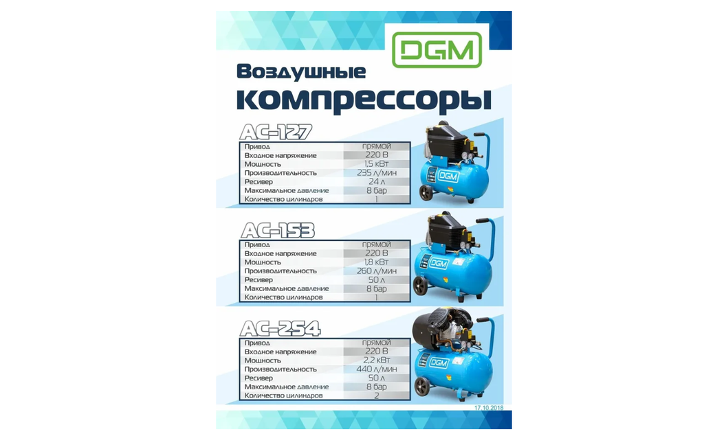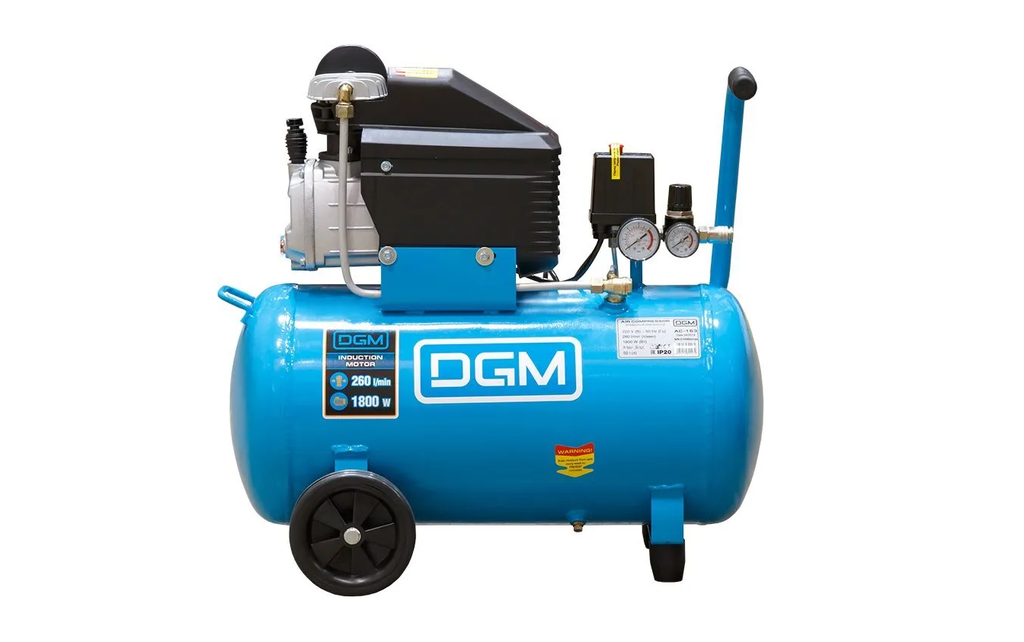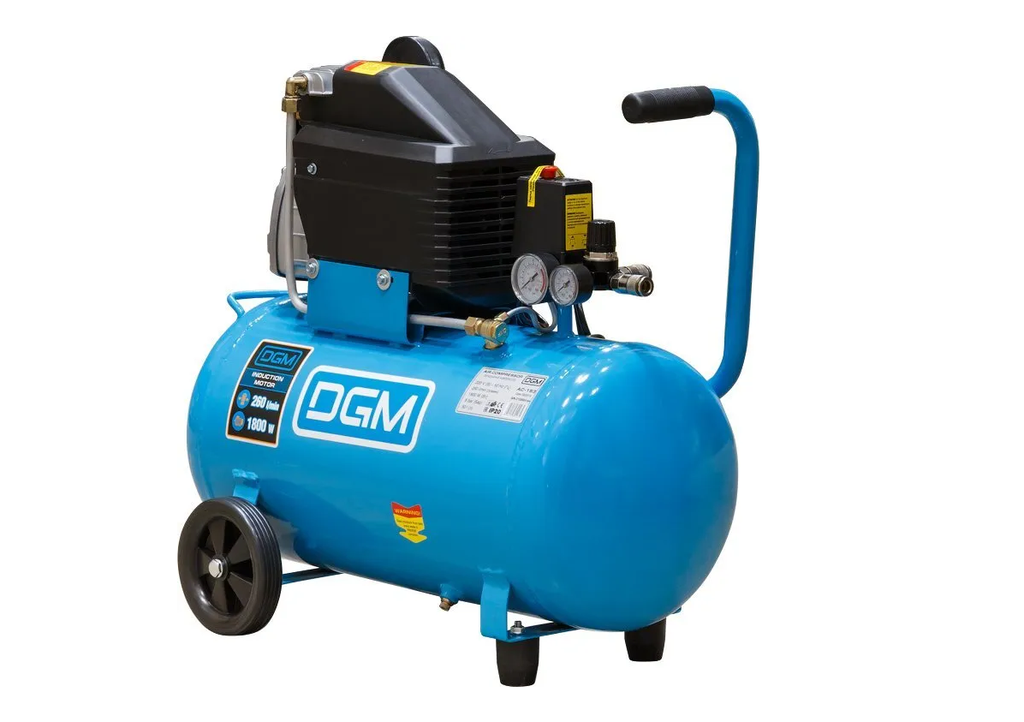 Компрессор DGМ АС-153 изготовлен из высококачественных и износостойких материалов, обеспечивающих надежность и долговечность оборудования. Компрессор имеет сравнительно небольшой вес и удобен в перемещении, а, благодаря прямому соединению вала двигателя с валом головки компрессора, сокращаются потери мощности на соединительных механизмах. Уровень масла должен быть немного выше верхней границы красной точки на глазке!