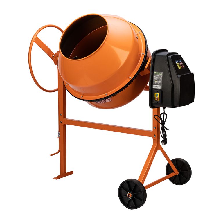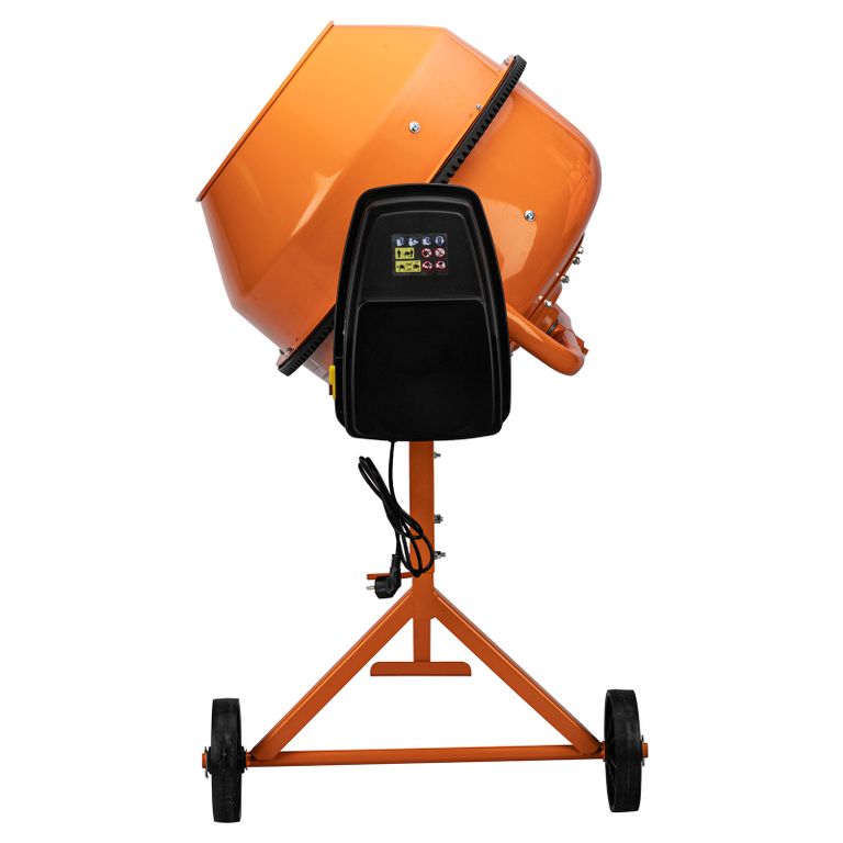 Бетономешалка строительная СИБРТЕХ БСЕ-140П, 140 л, 500 Вт, полиамидный венец из 5 частей и термозащита, фиксация угла наклона барабана, бетоносмеситель строительный