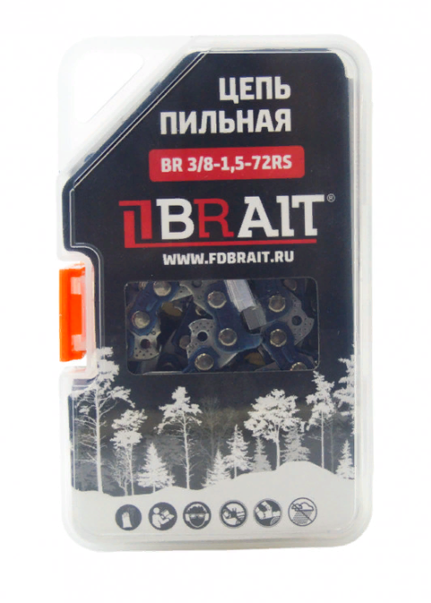 Цепь пильная, цепь для пилы BR 3/8LP-1,5-72 RS . Предназначена для использования с бензопилами. Режущие зубья изготовлены из специальной стали. В основном применяется для бытовых работ: подрезки сучьев в саду, небольшого ремонта, пиления дров для камина. Не следует забывать, что для нормальной работы цепи и увеличения срока эксплуатации ее необходимо постоянно смазывать. На упаковке есть отверстие для фиксации на стеллаж.