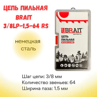 Цепь пильная BR 0,325-1,5-64 RS PRO (ФУТЛЯР), немецкая сталь. Предназначена для использования с бензопилами. Режущие зубья изготовлены из немецкой стали. В основном применяется для бытовых работ: подрезки сучьев в саду, небольшого ремонта, пиления дров для камина. Не следует забывать, что для нормальной работы цепи и увеличения срока эксплуатации ее необходимо постоянно смазывать. На упаковке есть отверстие для фиксации на стеллаж.