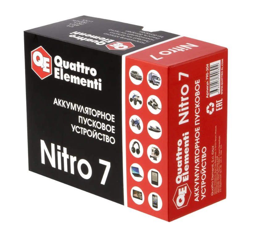 Пусковое устройство QUATTRO ELEMENTI Nitro 7 790-304 предназначается для зарядки электронных девайсов, а также для экстренного запуска автомобиля, мотоцикла, лодки и грузовика. Имеет встроенный источник питания, а также разъем USB.