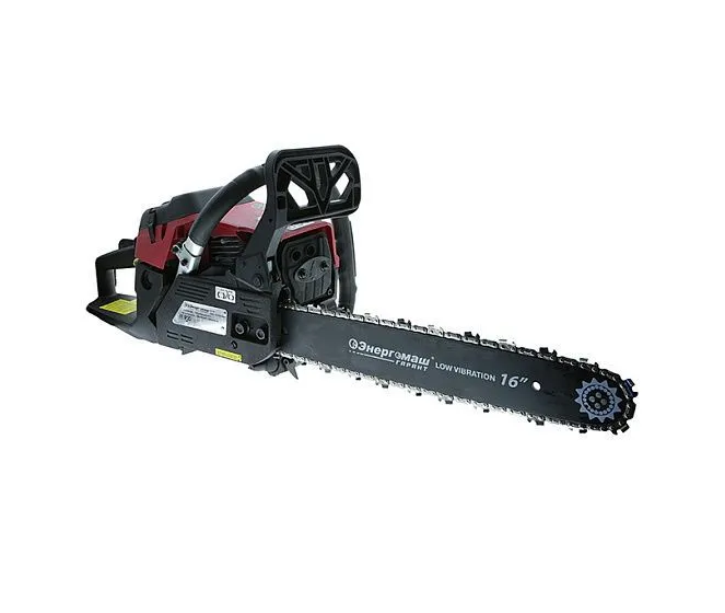 Бензопила Энергомаш ГАРАНТ БП1-45 – универсальная модель с высокой производительностью, идеально подходящая для выполнения широкого спектра работ с материалами любой толщины: от распила при производстве ремонтных и демонтажных работ до заготовки дров и подрезания веток на садовом участке. В основе ее работы лежит мощный двигатель, имеющий хонингованную поршневую групп с покрытием из твердого хрома – за счет этого он работает стабильно без потери мощности в случае изменения положения инструмента. Дополнительно мотор имеет систему стабилизации, которая обеспечивает высокую производительность в широком диапазоне оборотов и мгновенное ускорение цепи для эффективного распила. В качестве горючего следует использовать топливную смесь бензин АИ-92/масло для двухтактных двигателей. В бензопиле GC99452B применяется система легкого старта. Благодаря ей двигатель при каждом запуске приводится в действие без особых усилий со стороны пользователя. Также предусмотрен праймер, обеспечивающий подкачку топлива для того, чтобы холодный мотор инструмента можно было завести в сложных условиях. Ещё одна важная особенность – это возвратный механизм стартера, автоматически приводящий его в пусковое положение для последующего оперативного запуска. Благодаря ему обеспечивается постоянная готовность инструмента к работе. Усиленный картер мотора и кованый коленчатый вал обладают высокой прочностью и длительным сроком службы. Кроме того, двигатель имеет продуманное крепление крышки, что облегчает чистку и замену свечи и воздушного фильтра. В этой модели инструмента используется регулируемый масляный насос. Он автоматически приостанавливает смазку при холостом режиме и позволяет настроить подачу масла в соответствии с предстоящими задачами. В целях безопасности в конструкции бензопилы предусмотрена предохранительная клавиша. Ее задача заключается в том, чтобы предотвратить случайное нажатие газа. Дополнительно для безопасности есть ограничитель цепи, защитный щиток для правой руки и цепной тормоз – последний активируется силой инерции или принудительно. Для большего комфорта и защиты здоровья оператора бензопила снабжена антивибрационной системой, эффективно поглощающей вибрацию. Рукоятки с удобным расположением относительно центра тяжести делают инструмент хорошо сбалансированным, что особенно важно при длительной работе.