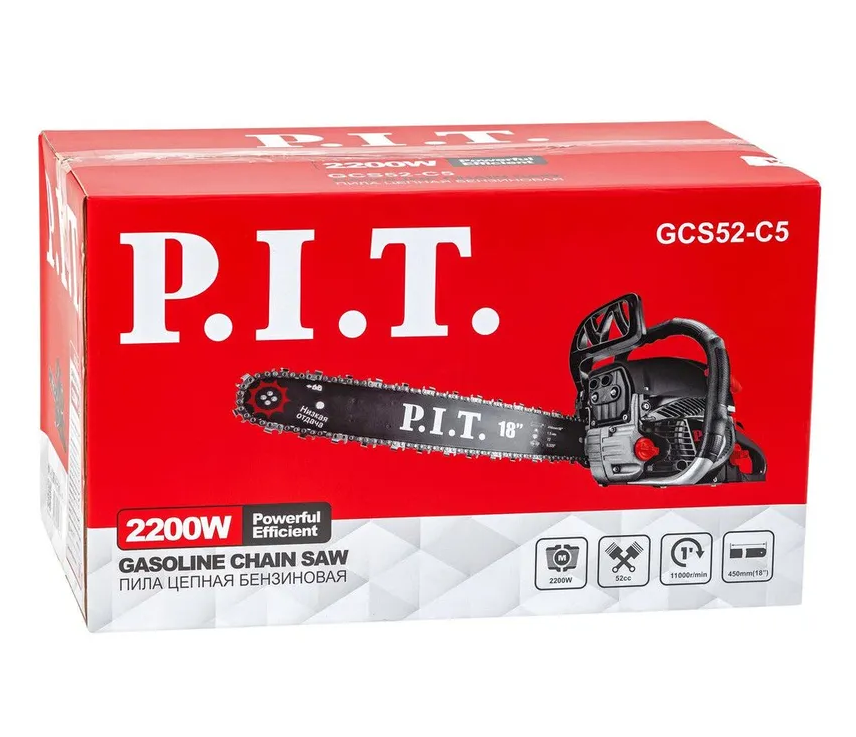 Бензопила, коробка, защитный кожух, зубчатый упор, пластиковая емкость для смешивания, ключ шестигранный 2 шт, ключ свечной, плоская отвертка, руководство по эксплуатации.