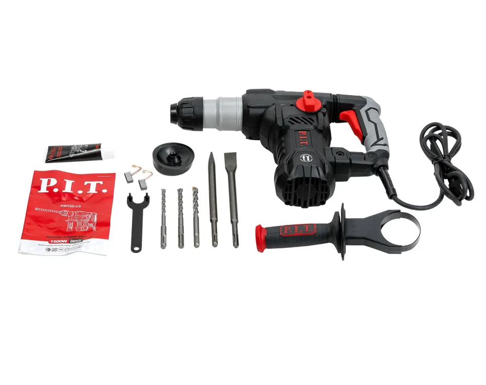 Перфоратор P.I.T. PBH32-C5 Мастер в кейсе- 4-е поколение перфораторов PIT - для долгой службы. Модифицированная конструкция щеткодержателя и увеличенные щетки обеспечивают меньший нагрев и отлично проводят электричество. Кроме того, в новой версии увеличена прочность корпуса. Благодаря нейлону в составе, перфораторы легче переносят даже самые жесткие удары. P.I.T. PBH32-C5 - мощный и производительный перфоратор. Подходит для долбления бетона, бурения отверстий, а также сверления в дереве и металле. Три режима работы обеспечивают отличный результат при работе с различными материалами. Эргономичная рукоятка D-образной формы предотвращает выскальзывание и защищает руки, а система SDS-Plus позволяет менять буры легко и без усилий.