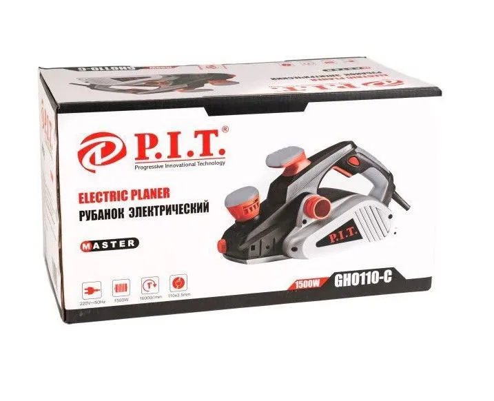 Рубанок P.I.T. GHO 110-C МАСТЕР - качественный инструмент для работы с древесиной любой твердости. Используйте рубанок P.I.T. GHO110-C, чтобы обтесывать, строгать и подгонять необработанную древесину. С дополнительным оборудованием инструмент подойдет для выбора четверти, снятия фасок и обработки досок на укрепленной станине. Эффективность инструмента обеспечивает внушительная мощность, 1500 Вт, а комфорт работы небольшой вес и эргономичный корпус. Легкий, удобный, мощный рубанок ПИТ- все для отличного результата.