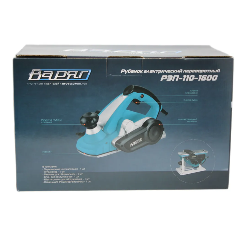 Электрический рубанок Варяг РЭ-110/1600- это надежный и качественный инструмент для обработки деревянных поверхностей. За счет большой мощности отлично подходит для строгания твердых пород древесины.