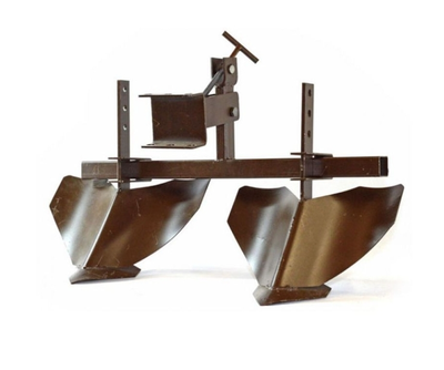 Окучник двухрядный применяется для создания борозды земли, которая за счет особой формы лемеха распределяется по двум сторонам.