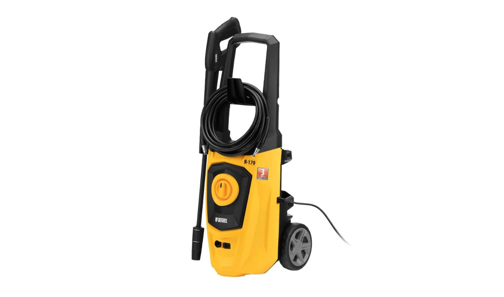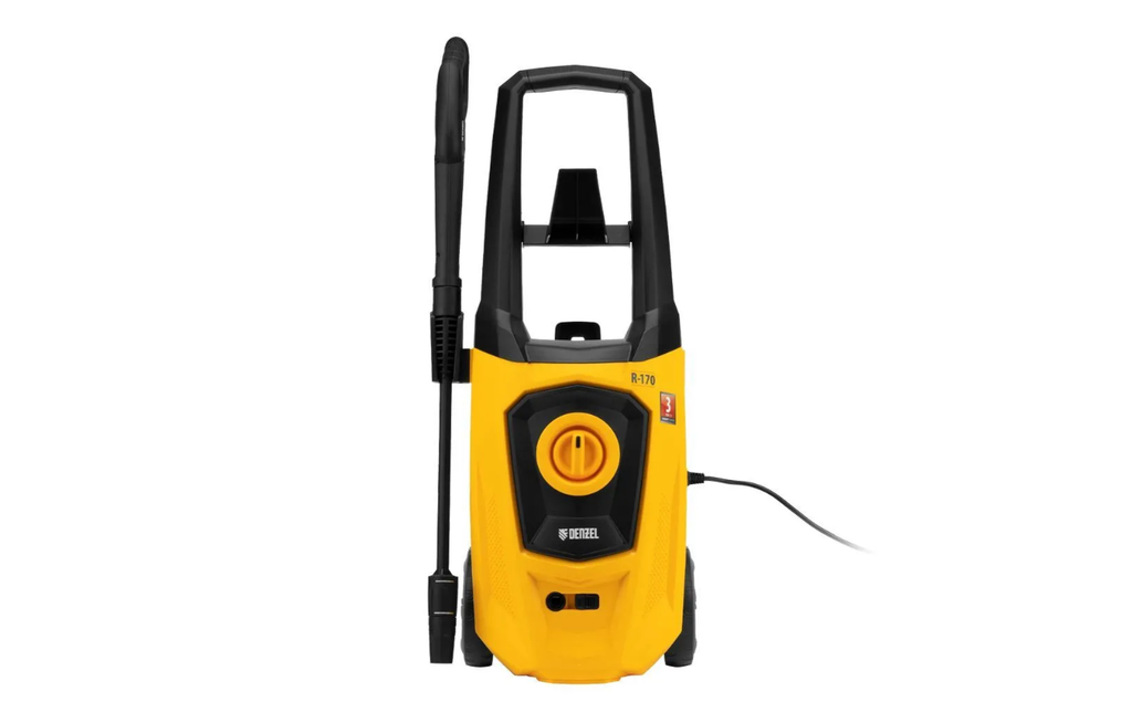 Колесная моечная машина высокого давления Denzel R-170 58228 мощностью 2000 Вт и производительностью 360 л/ч подает струю воды под давлением 170 бар и используется для очищения поверхностей. Позволяет быстро удалить загрязнения с кузова автомобиля, мотоцикла, велосипеда, садового и хозяйственного инвентаря, очистить садовую дорожку и террасу, а также стены и окна строений. Источником воды может служить водопроводная линия, а также любая емкость — машина способна работать в режиме самовсасывания. Мойка пригодится владельцам загородных участков.