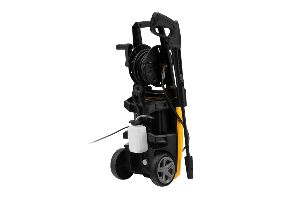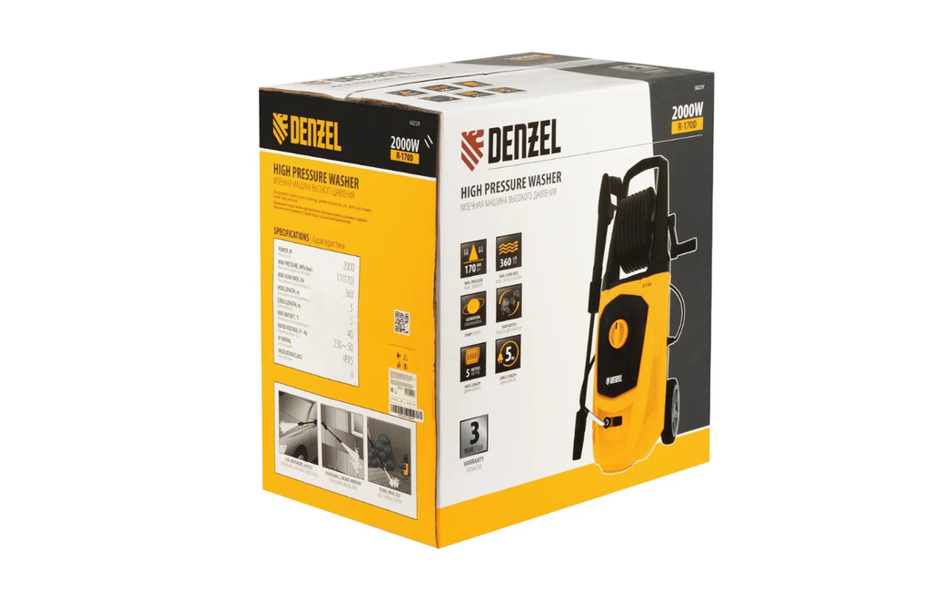 Моечная машина высокого давления Denzel R-170D 58229 с барабаном, мощностью 2000 Вт и производительностью 360 л/ч, подает струю воды под давлением 170 бар и используется для очищения поверхностей. Позволяет быстро удалить загрязнения с кузова автомобиля, мотоцикла, велосипеда, садового и хозяйственного инвентаря, очистить садовую дорожку и террасу, а также стены и окна строений. Источником воды может служить водопроводная линия, а также любая емкость — машина способна работать в режиме самовсасывания. Мойка пригодится владельцам загородных участков.