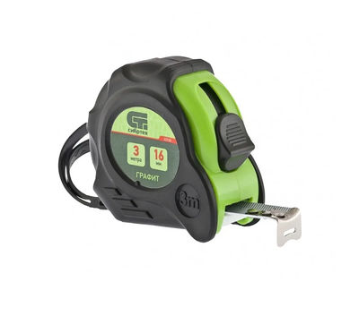 Измерительная рулетка 3 м х 16 мм Сибртех, Графит, обрезиненный корпус, амортизатор