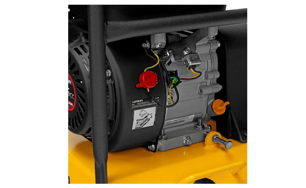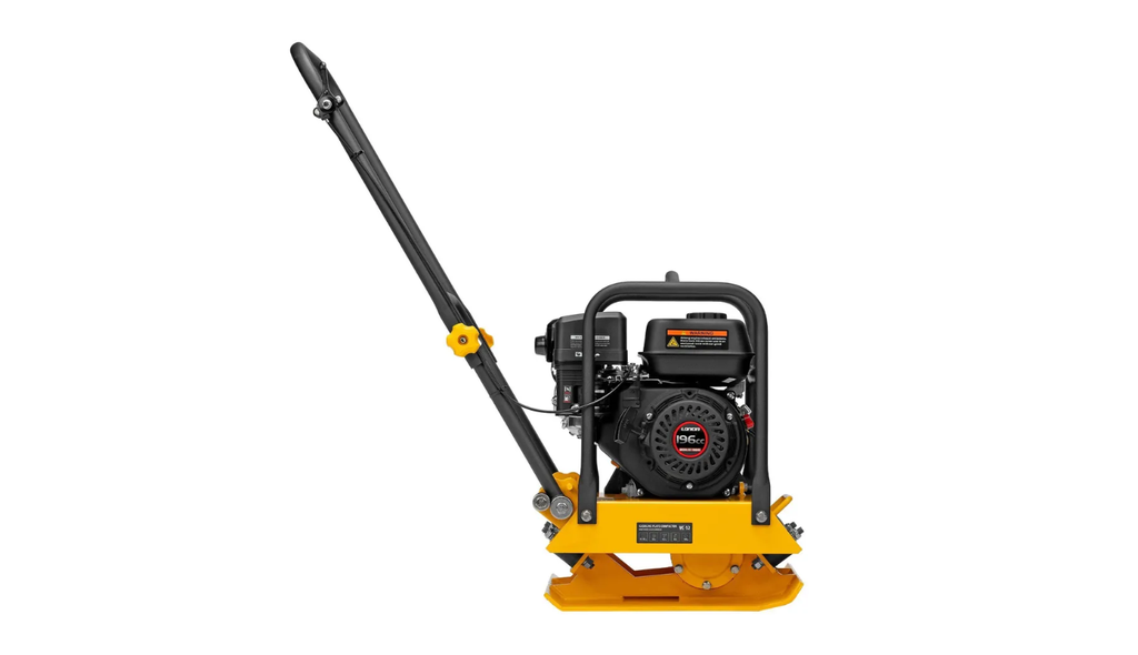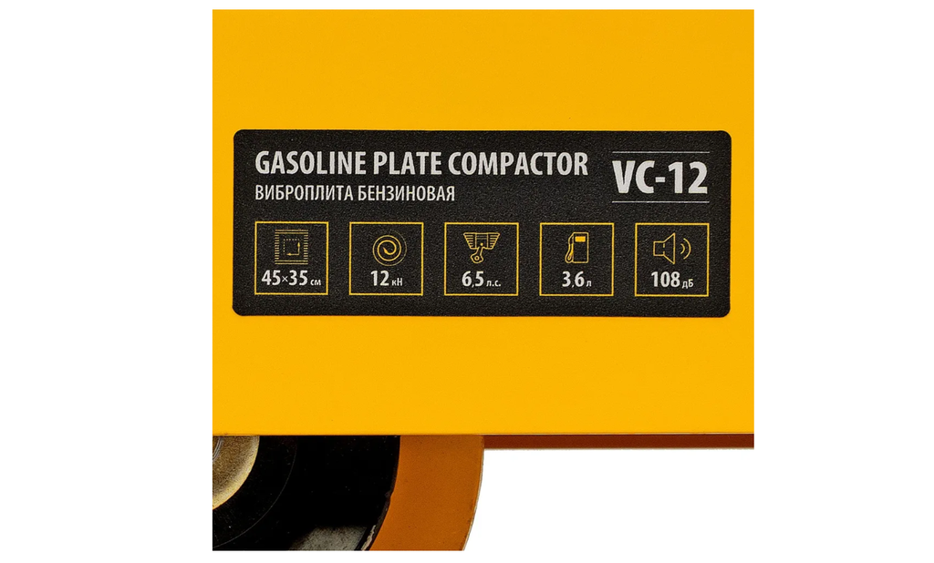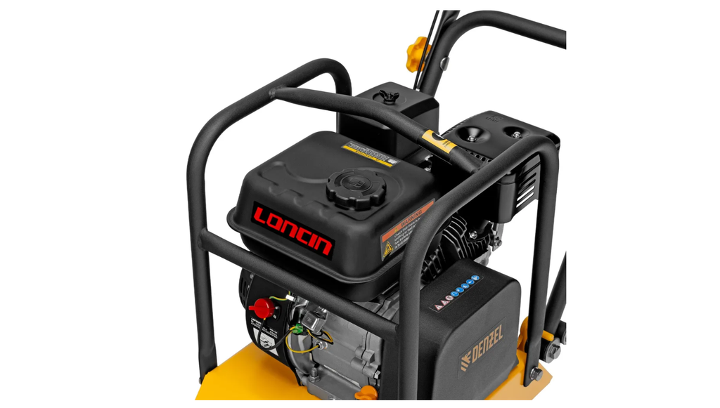 Виброплита бензиновая Denzel VC-12 97041 с основанием размером 45 х 35 см, оснащена двигателем объемом 196 см3 и воздействует на поверхность с центробежной силой 12 кН. П