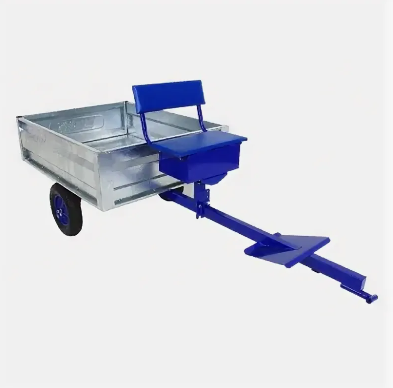 Прицеп к мотоблоку ТПЦ 300 (VALRUS) оцинкованная, кузов 1250*1000*330 мм, самосвальная, ящик для инструментов, грузоподъемность 300 кг. Одноместная, без тормозов.
