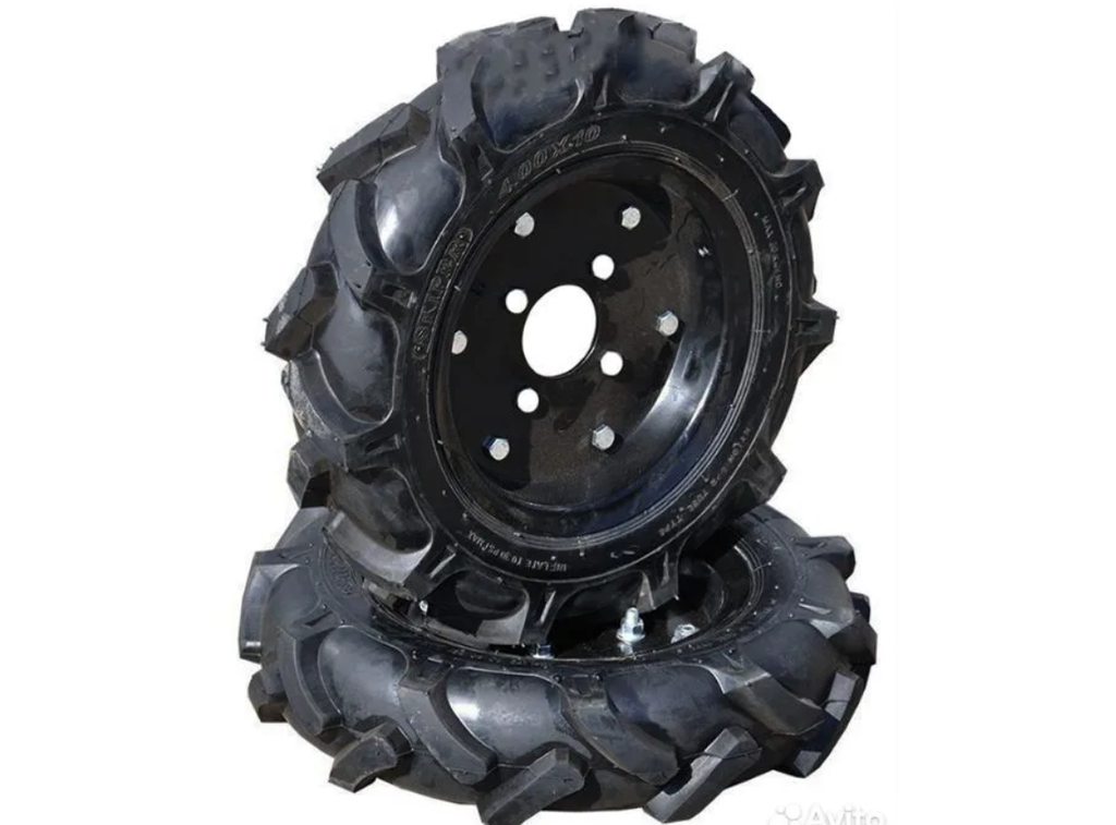 Комплект пневматических колес 10-4 для мотоблоков и культиваторов 2 шт в комплекте. Протектор - ёлочка, диск 4 отверстия